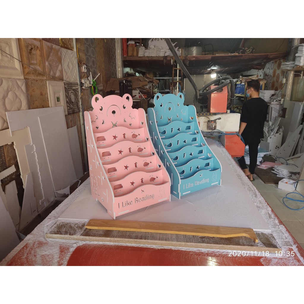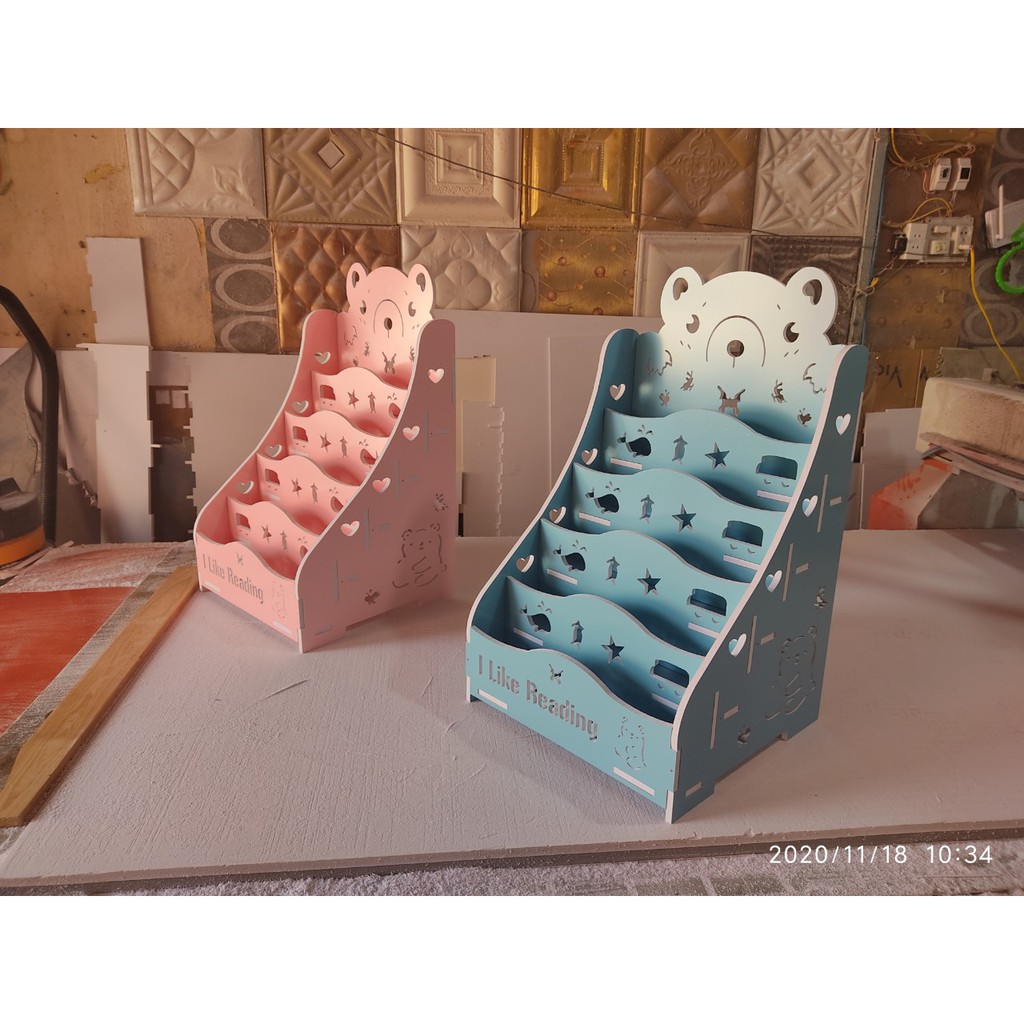 Sản phẩm: Kệ giá sách hình gấu 2 đựng đồ đa năngChất liệu: PVC Foam ; Gỗ nhựa composite