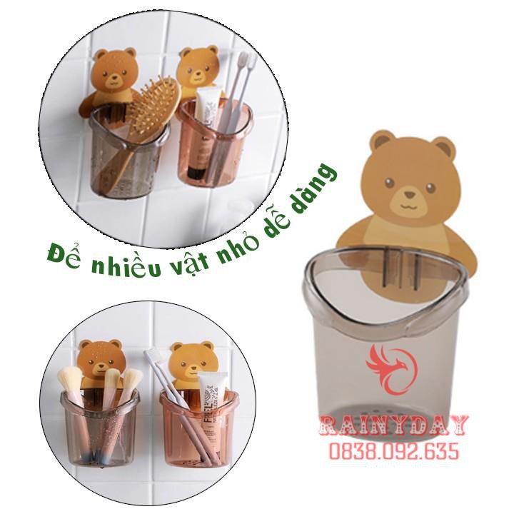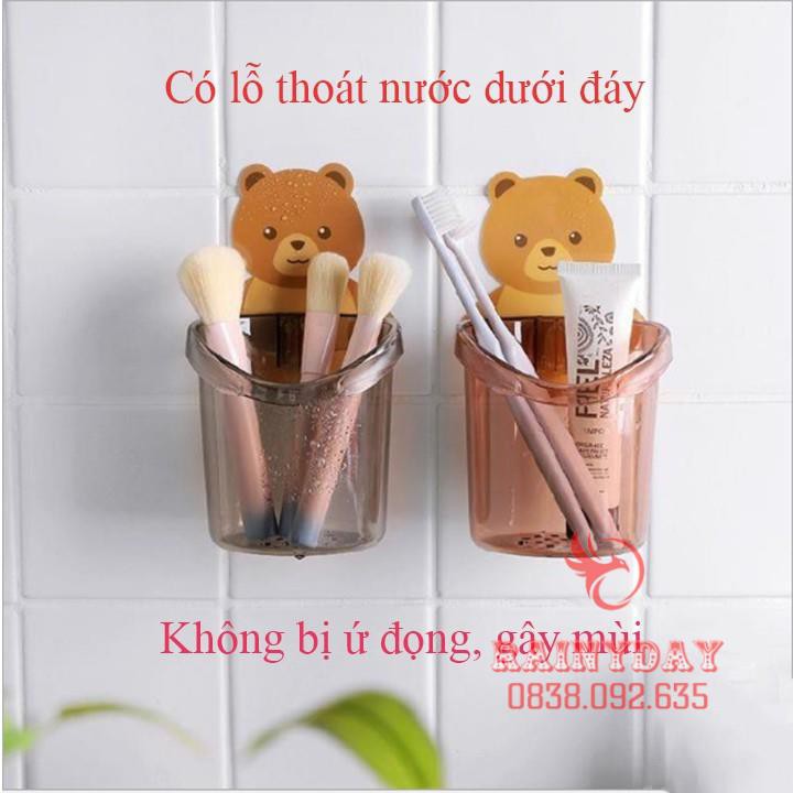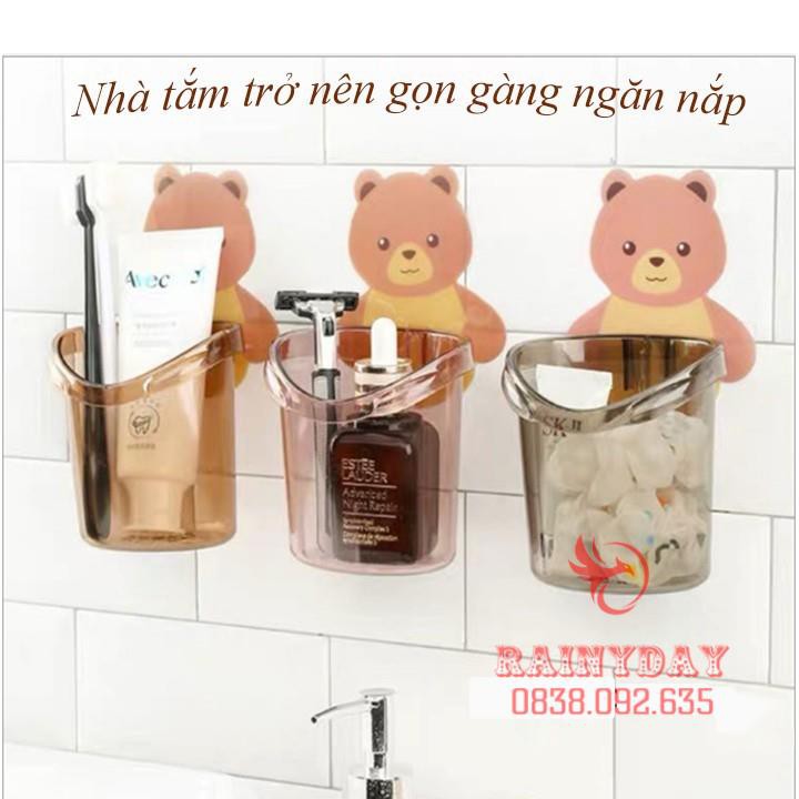 Kệ giá cốc để đựng bàn chải và kem đánh răng treo đồ dán gắn tường cute dễ thương hình gấu