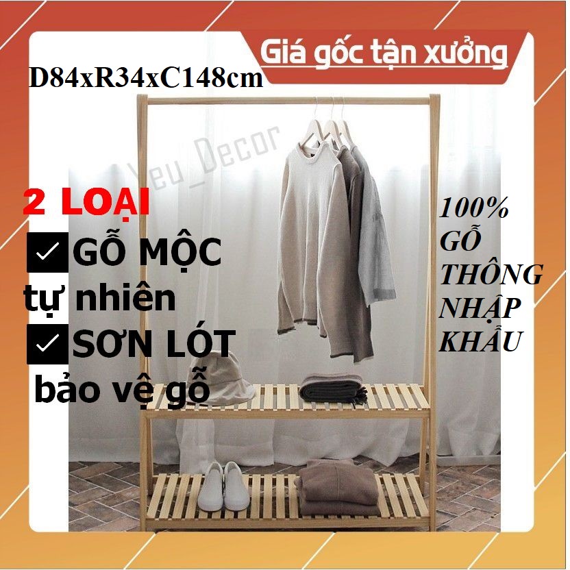Kệ Giá Treo Quần Áo Chữ A 2 Tầng Và 1 Tầng Gỗ Thông Nhập Khẩu_Phong cách Hàn Quốc