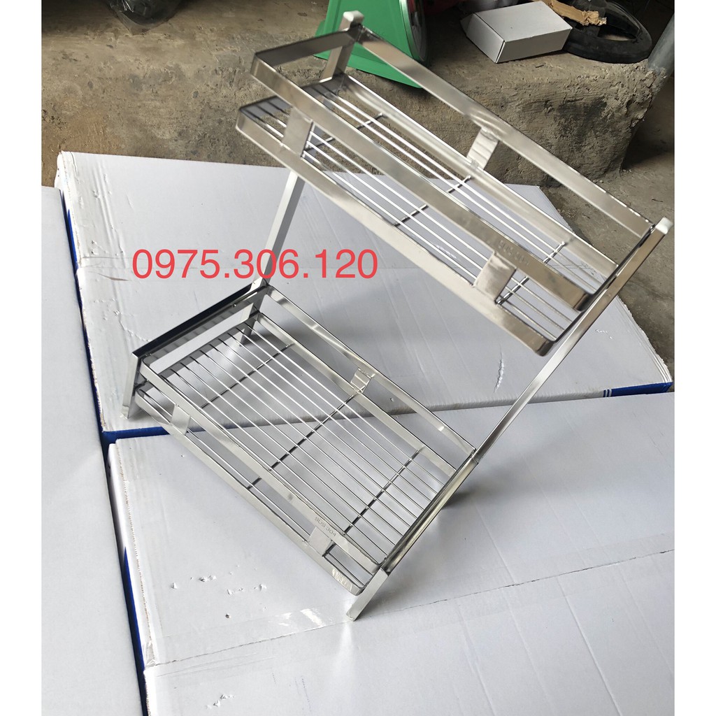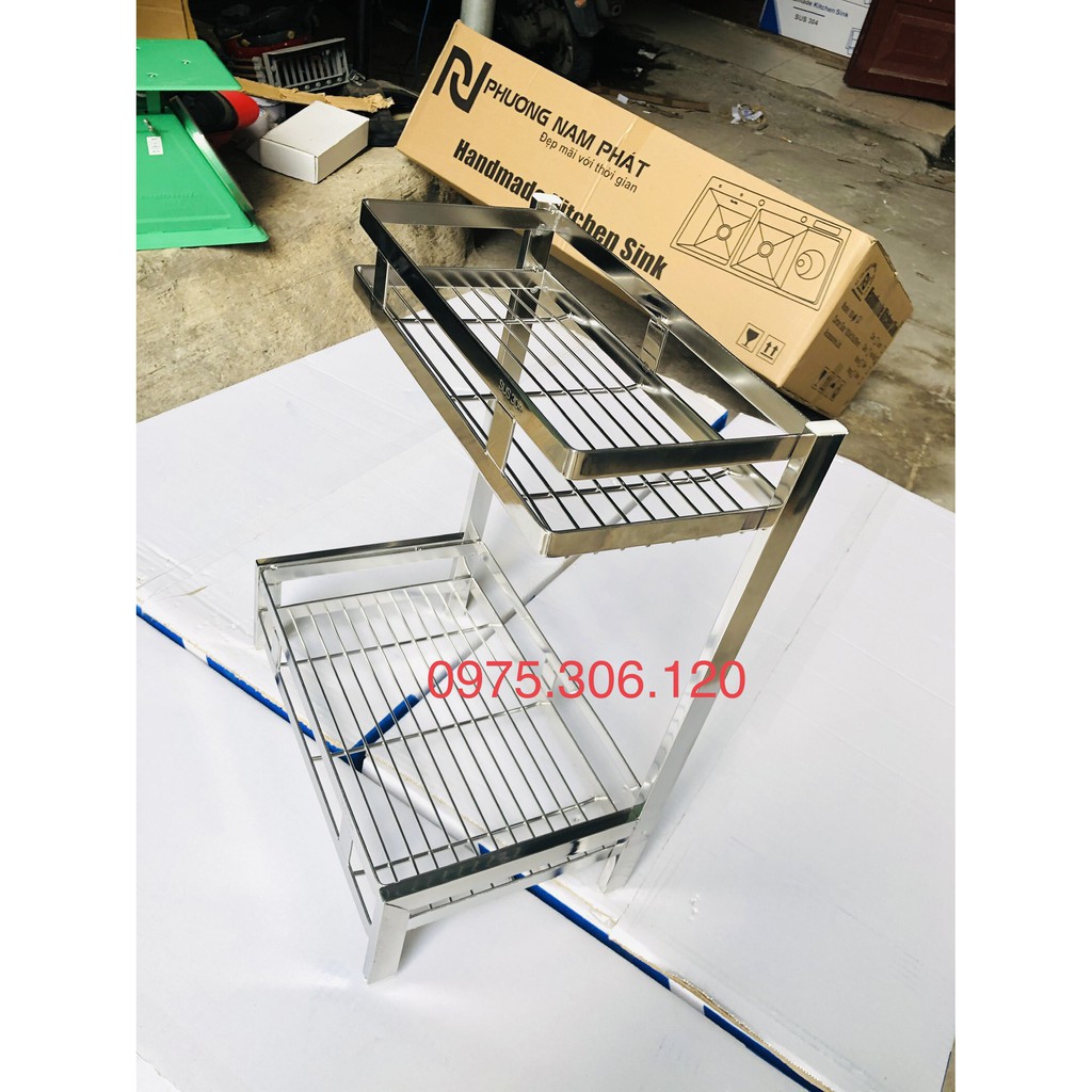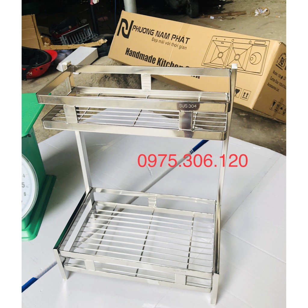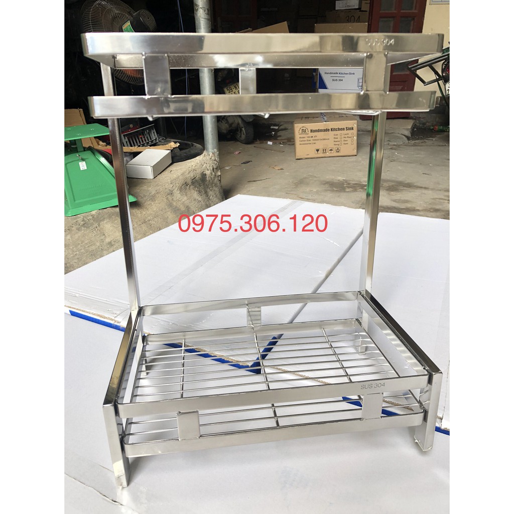 Kệ Gia Vị 2 TẦNG đặt trên bàn đá 100% INOX 304 BẠC, hàng đặt xưởng theo yêu cầu chắc chắn, dày, cầm nặng tay, inox chuẩn