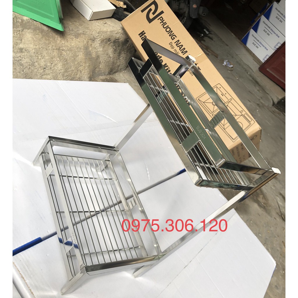 Kệ Gia Vị 2 TẦNG đặt trên bàn đá 100% INOX 304 BẠC, hàng đặt xưởng theo yêu cầu chắc chắn, dày, cầm nặng tay, inox chuẩn
