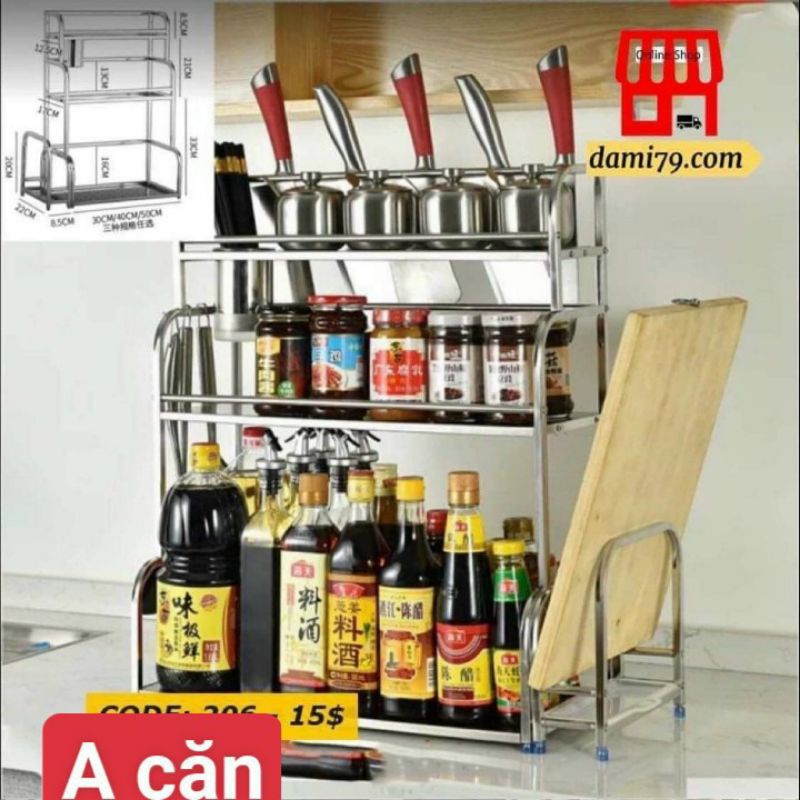 Kệ gia vị nhà bếp 3 tầng và 2 tầng inox, kệ đựng cao cấp chống han gỉ