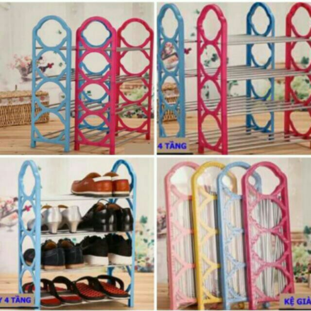 Com bộ gồm Kệ giày 4 tầng đuocj thiết kế gọn gàng trong nhã . Bằng nhựa và nhôm .giúp giầy dép gọn gàng............................