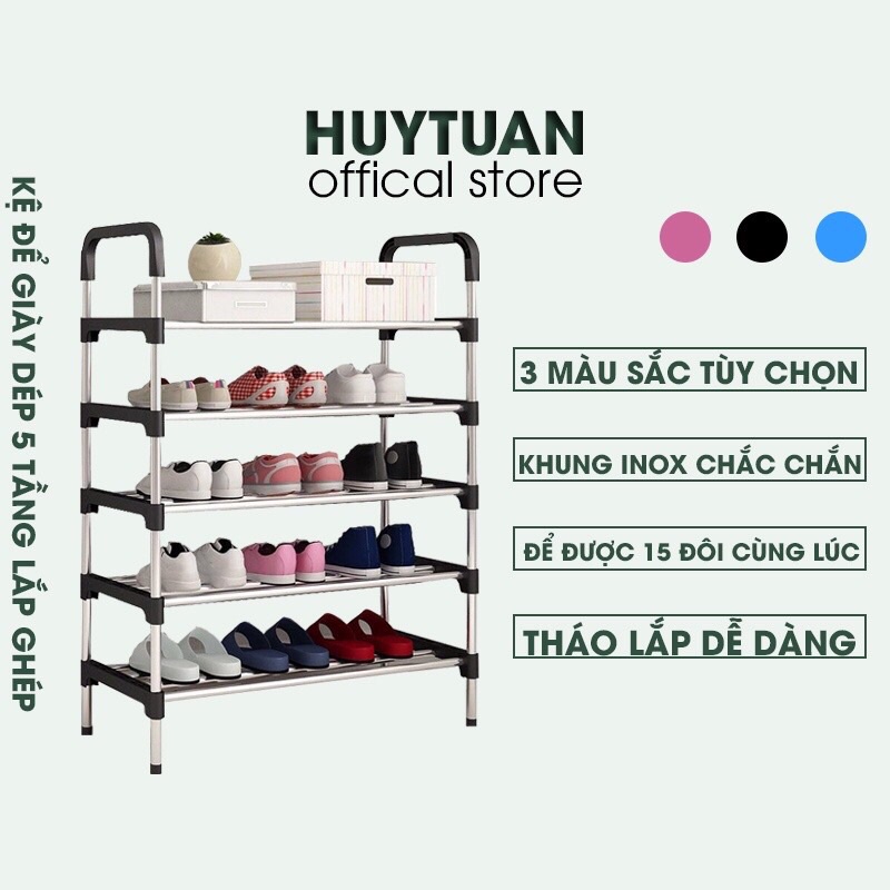 Kệ giày 5 tầng để giày dép lắp ghép thông minh bằng nhựa và inox