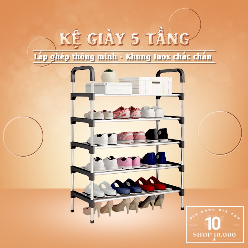 Nhà cửa & Đời sống > Nội thất > Kệ & Giá || Kệ giày 5 tầng lắp ghép thông minh để giày dép bằng nhựa và inoxCòn hàng