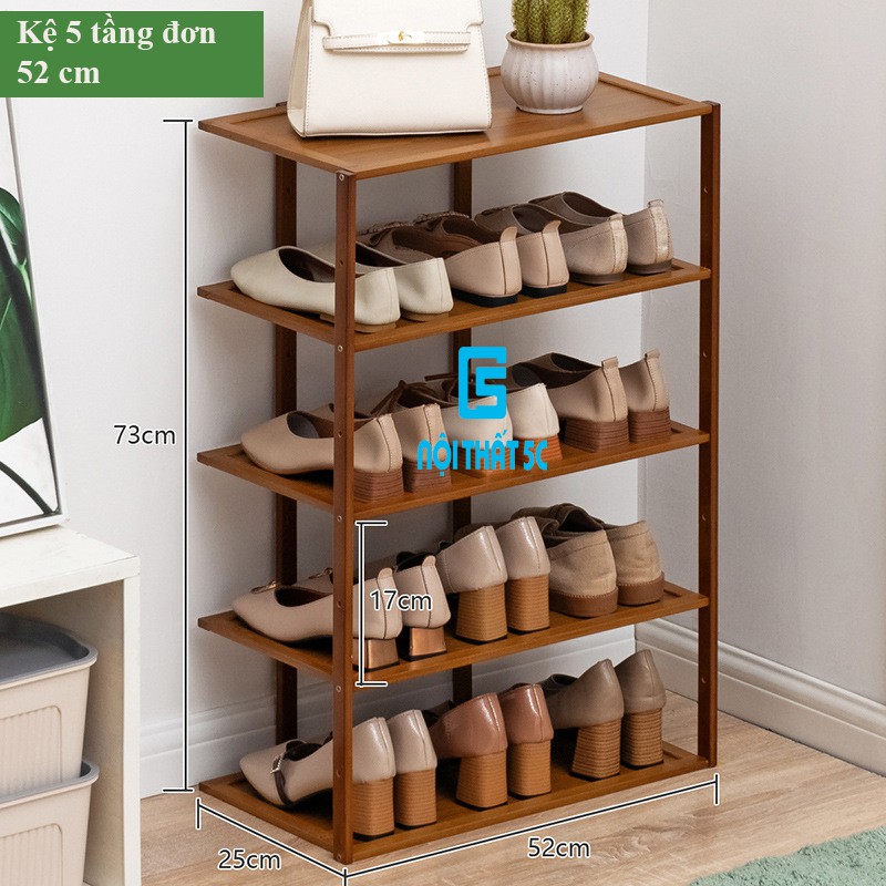 + Dài 52cm - 5 tầng đơn: 52x25x73cm ( DxRxC)