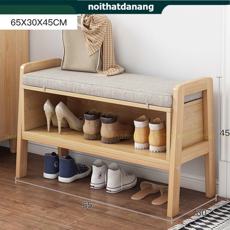 Giới thiệu Kệ giày đệm bọt biển xốp tiện lợi phù hợp mọi không gian, giá để giày kiêm ghế ngồi chân gỗ tự nhiên