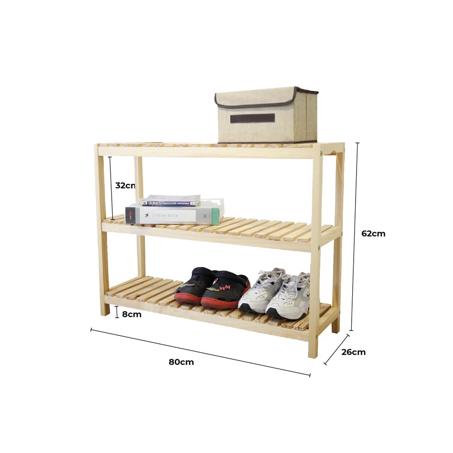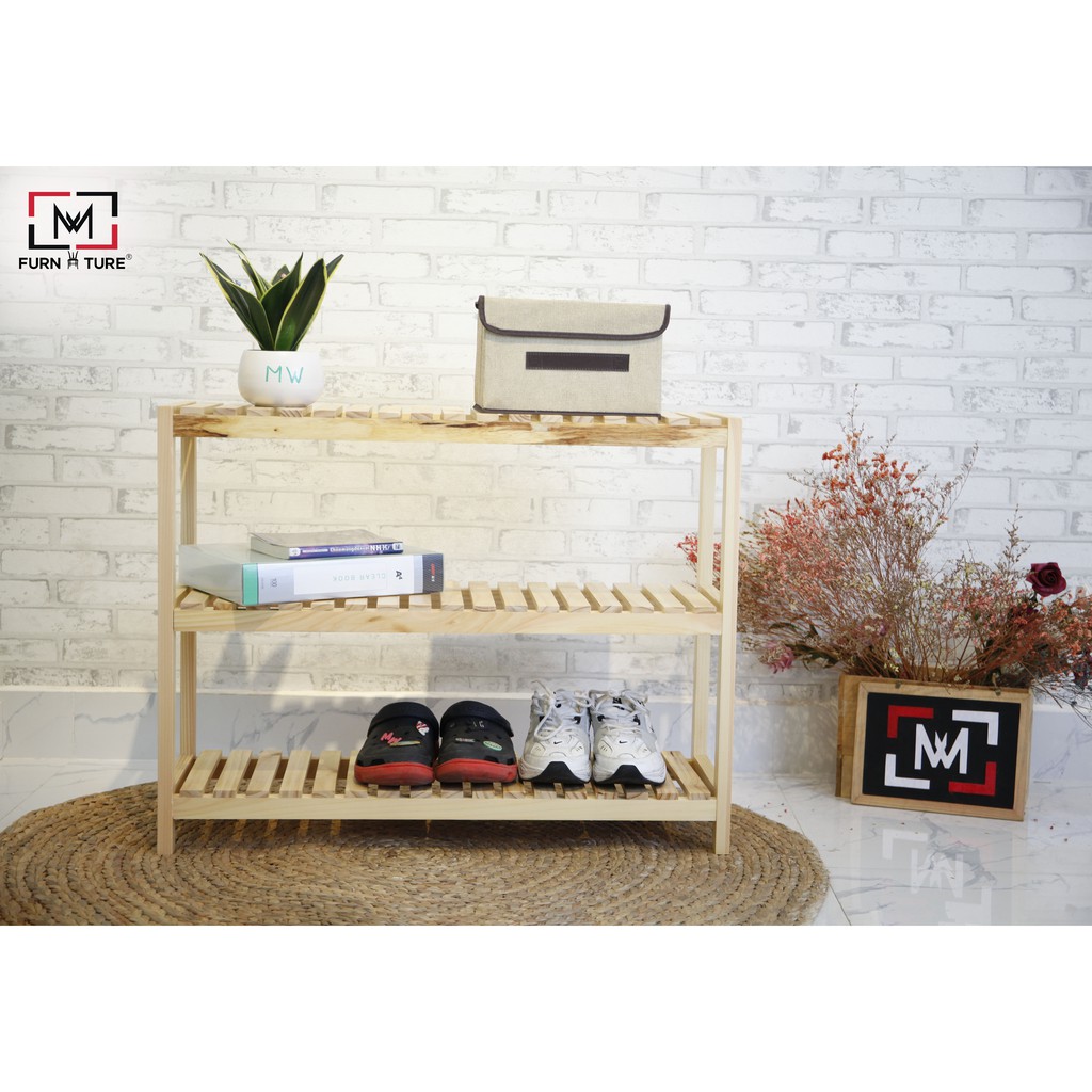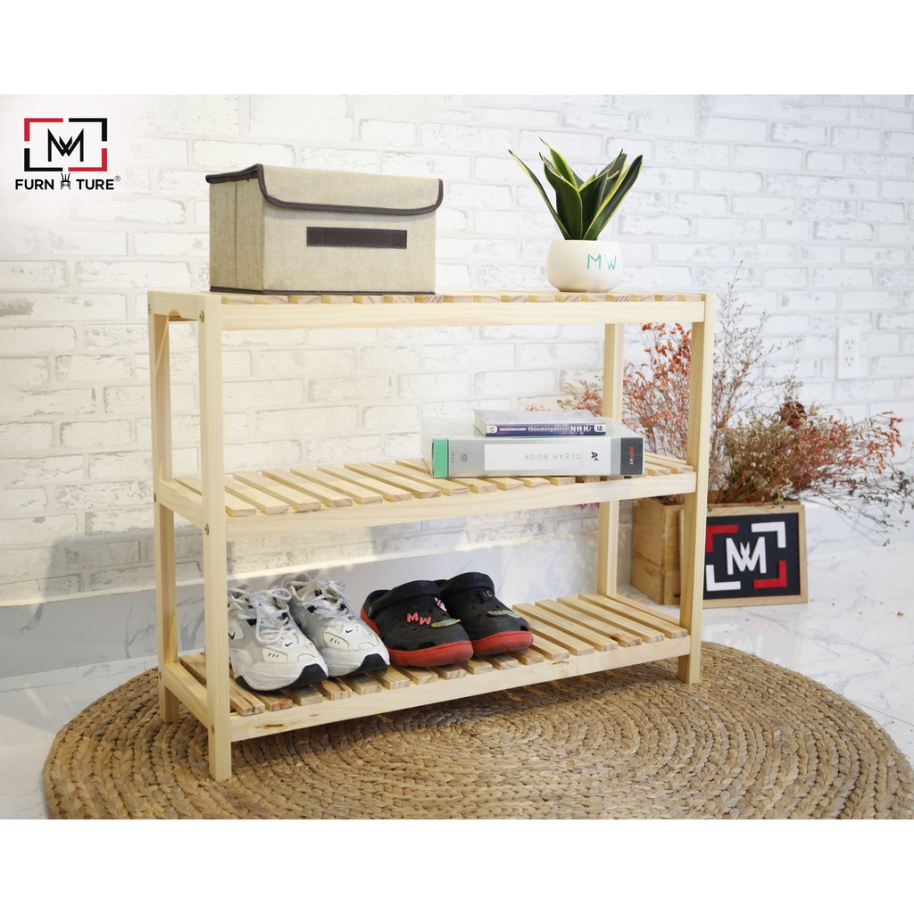 Kệ giày dép đa năng lắp ráp 3 tầng màu gỗ size 80x36x62 cm thương hiệu MW FURNITURE