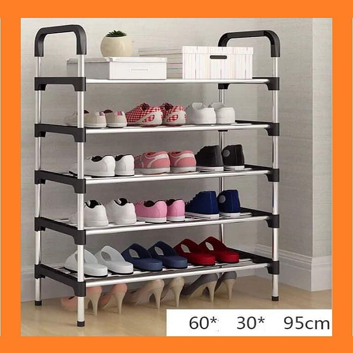 Nhà cửa & Đời sống > Sắp xếp nhà cửa > Kệ giày, hộp giày || Kệ giày dép Inox 5 tầng 95cm lắp ráp đa năng - tủ giày có quai xách tiện dụngCòn hàng