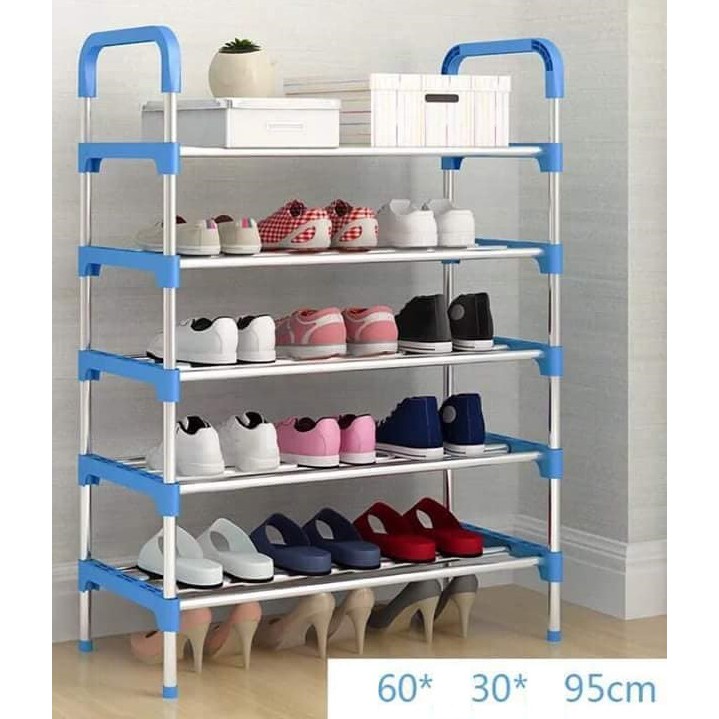 Kệ giày dép Inox 5 tầng 95cm lắp ráp đa năng - tủ giày có quai xách tiện dụng