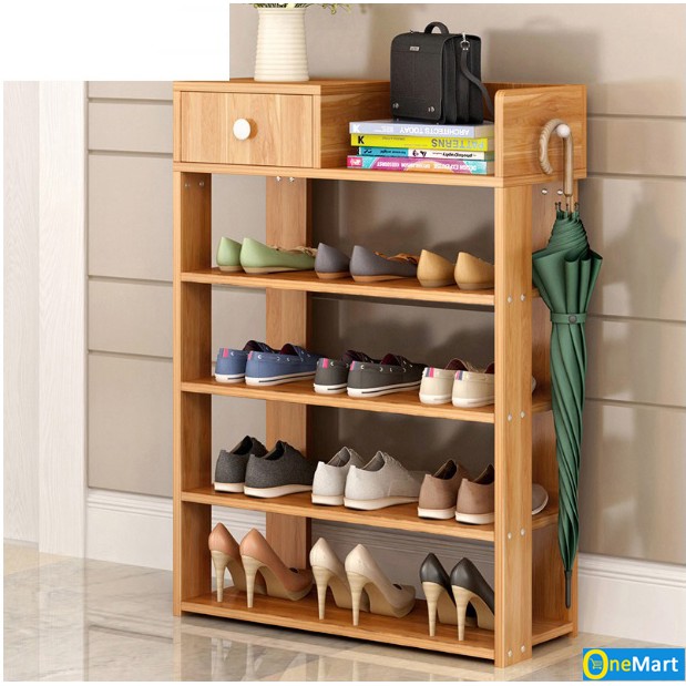 Kệ giày gỗ 5 tầng cao cấp, giá để giày dép đa năng