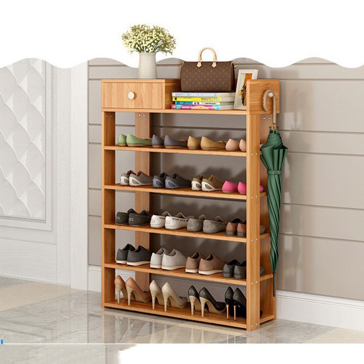 Kệ giày dép bằng gỗ 5 tầng được ví như người bảo hộ trung thành cho những đôi giày xinh đẹp luôn được gọn gàng, sạch sẽ. Sản phẩm góp phần tạo nét hiện đại, sinh động cho không gian sống. - Là một trong những vật dụng được nhiều gia đình sử dụng để đựng giày, dép cho không gian nhà bạn luôn ngăn nắp. Kệ giày dép bằng gỗ 5 tầng đa năng, khung gỗ chắc chắn là một trong những sự lựa chọn hoàn hảo cho gia đình bạn cất giữ đồ đạc gọn gàng. - Kệ giày dép bằng gỗ 5 tầng sở hữu thiết kế đẹp mắt, hiện đại, tính linh động cao và dễ dàng lắp đặt giúp ngôi nhà của bạn thêm phần sang trọng, gọn gàng và ngăn nắp hơn. Sản phẩm được làm từ gỗ chắc chắn, bền bỉ, chịu lực tốt giúp bạn sắp xếp gọn gàng các đôi giày dép của các thành viên trong gia đình. - Kệ giày dép bằng gỗ 5 tầng nhỏ gọn, dễ dàng tháo lắp, đặc biệt có thể xếp lại cất gọn khi không sử dụng đến, tiết kiệm diện tích. Khung gỗ có kèm ốc vít, kết cấu chắc chắn, bền bỉ, chịu lực tốt.