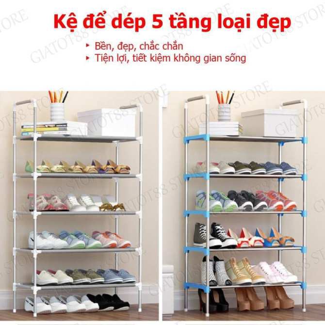 - Kệ để giày dép 5 tầng thiết kế dạng lắp ghép, việc lắp vào, tháo ra rất nhanh chóng, dễ dàng di chuyển nhiều nơi, với nhiều mục đích khác nhau: giá sách, kệ để đồ, giá để giày…- Sản phẩm phù hợp với mọi không gian, tiết kiệm diện tích sử dụng