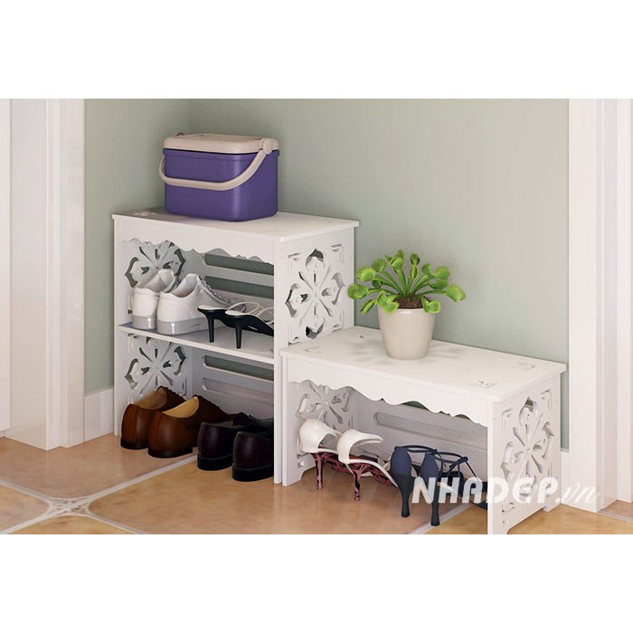 Kệ để giày đa năng với họa tiết hoa văn đẹp mắt, vừa có thể giúp bạn cất gọn gàng giày, dép, vừa có thể để đồ trang trí ở trên mặt kệ.Bạn có thể lựa chọn mẫu phù hợp với nhu cầu và không gian của ngôi nhà: