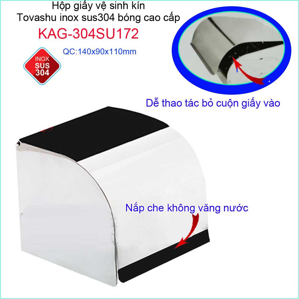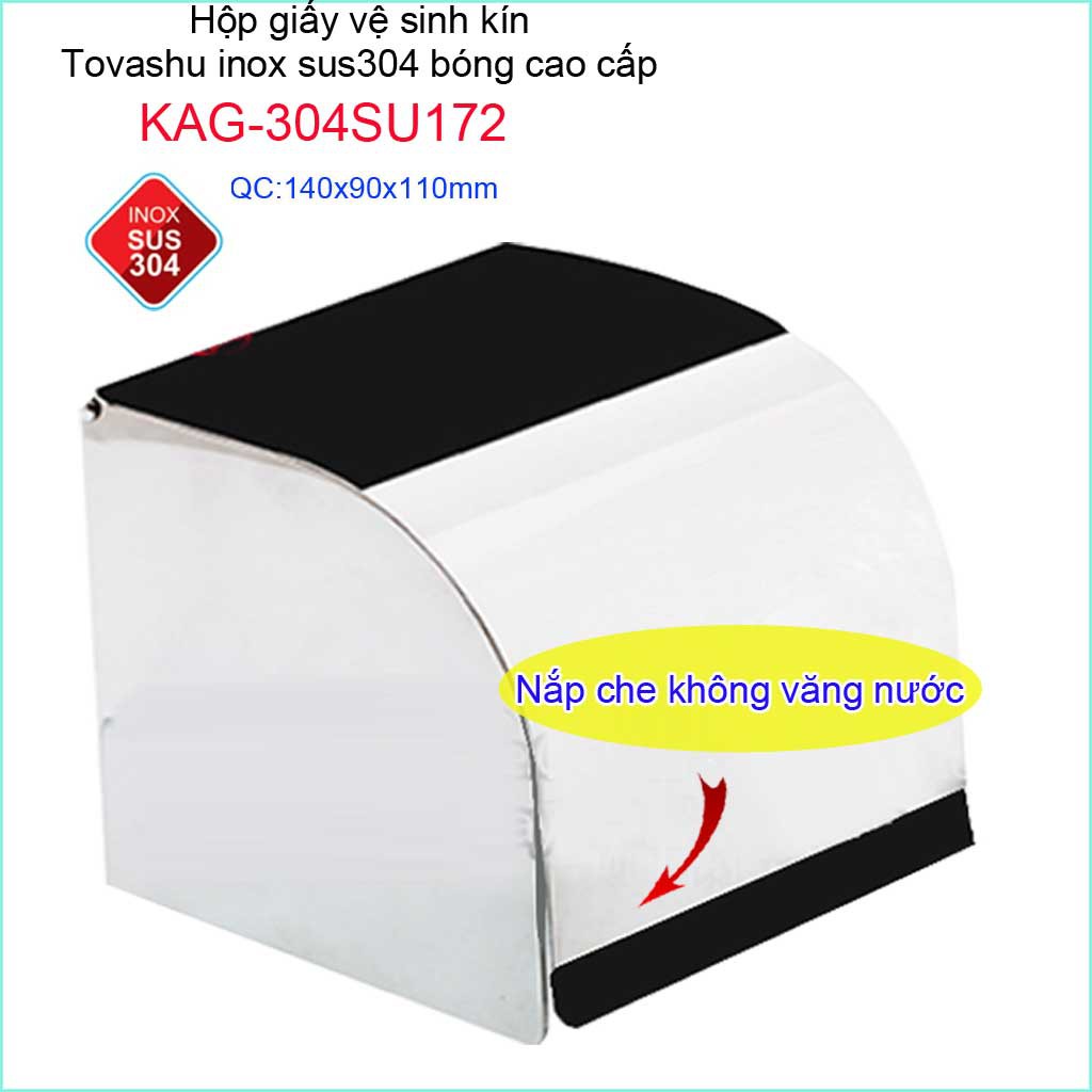 Kệ giấy nhà tắm Tovashu KAG-304SU172, hộp đựng giấy nhà vệ sinh Inox SUS304 Nhật cao cấp