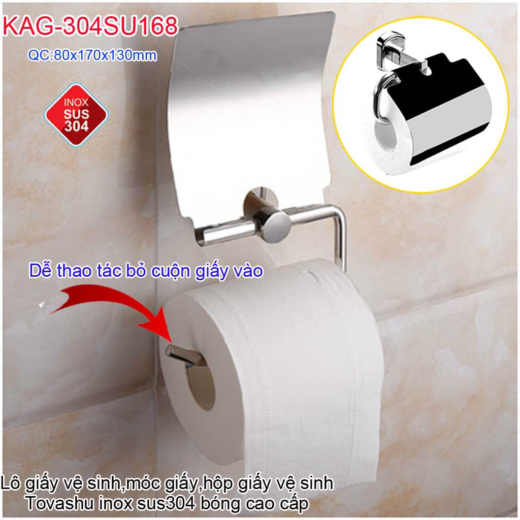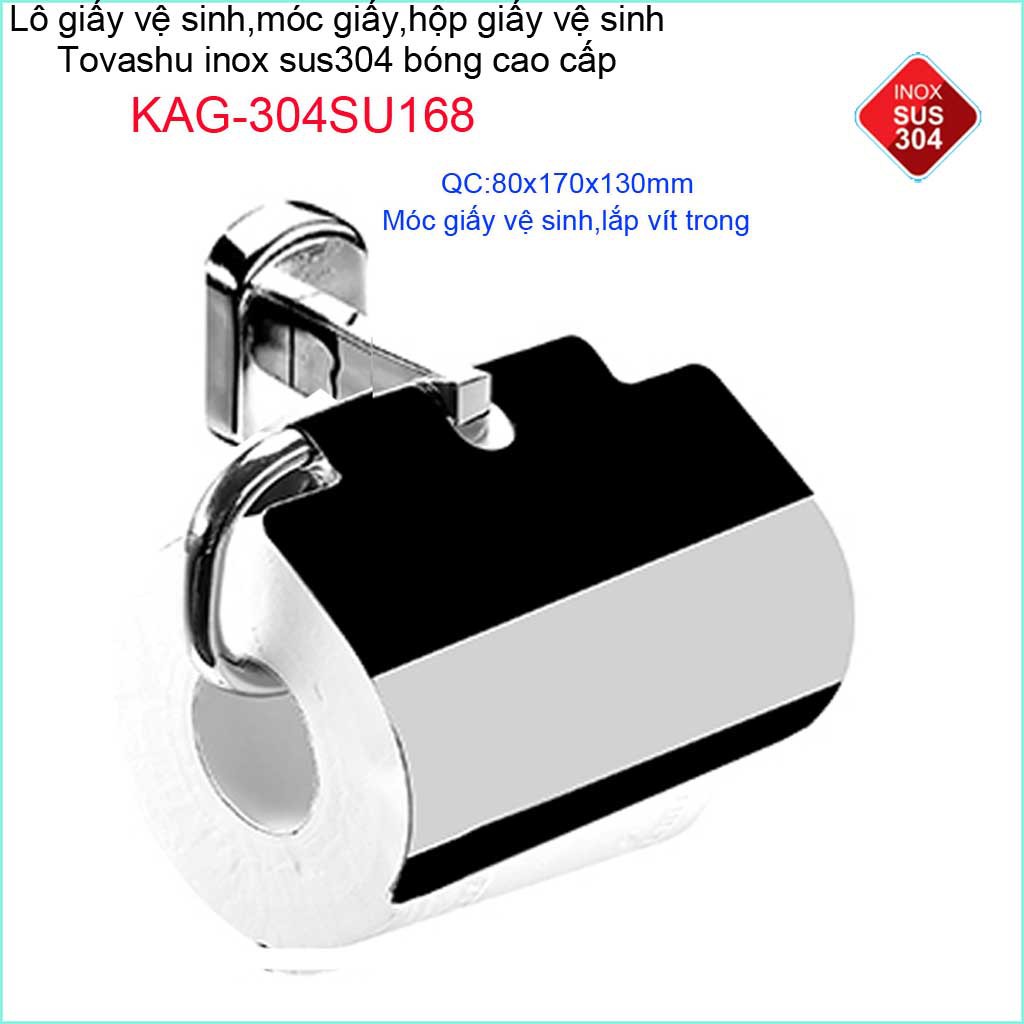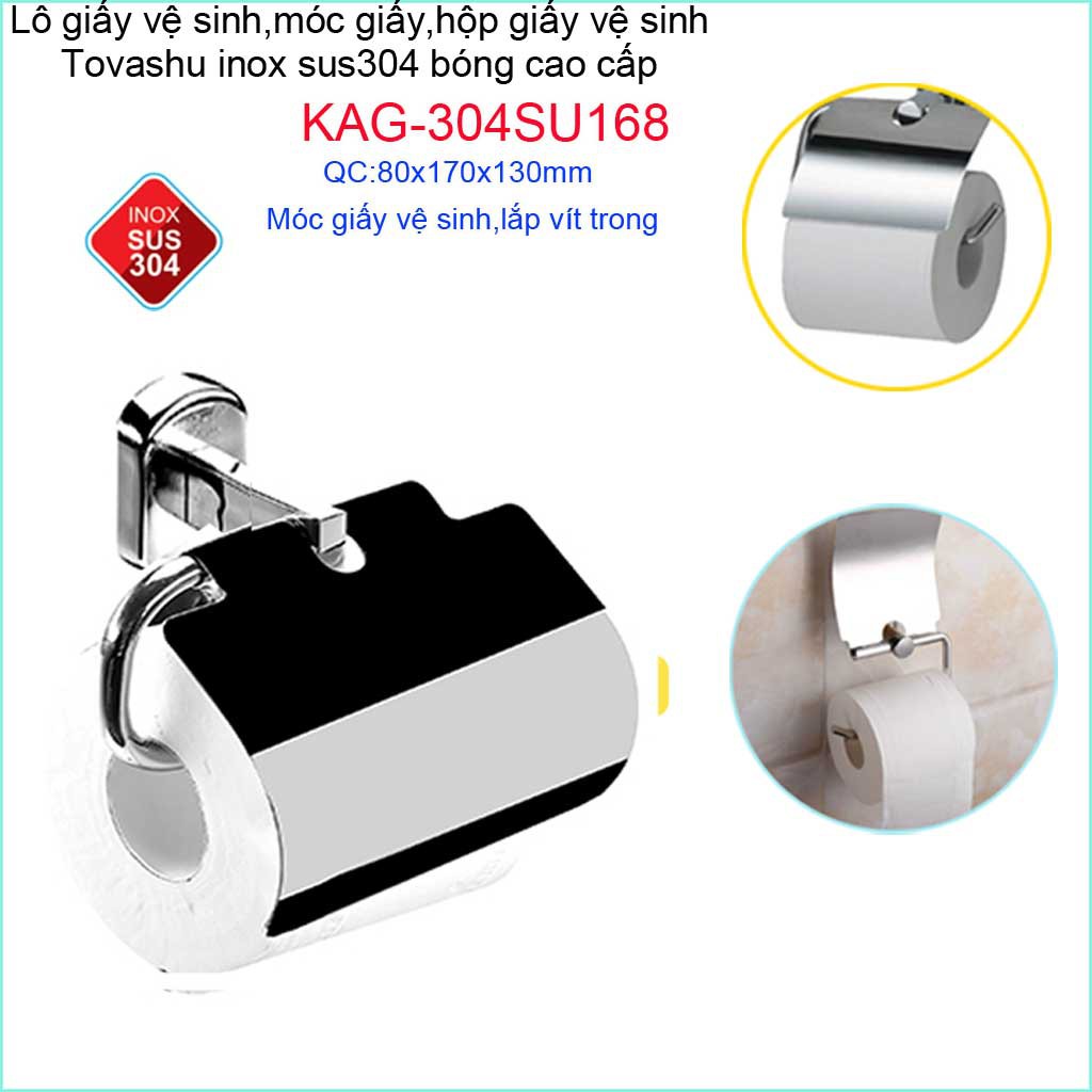 Kệ giấy nhà tắm Tovashu KAG-304SU168, hộp đựng giấy nhà vệ sinh Inox SUS304 Nhật cao cấp