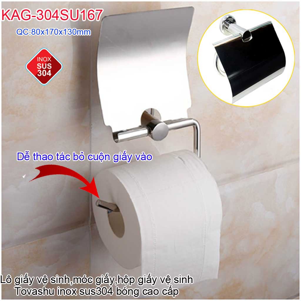 Giới thiệu Kệ giấy nhà tắm Tovashu KAG-304SU167, hộp đựng giấy nhà vệ sinh Inox SUS304 Nhật cao cấp