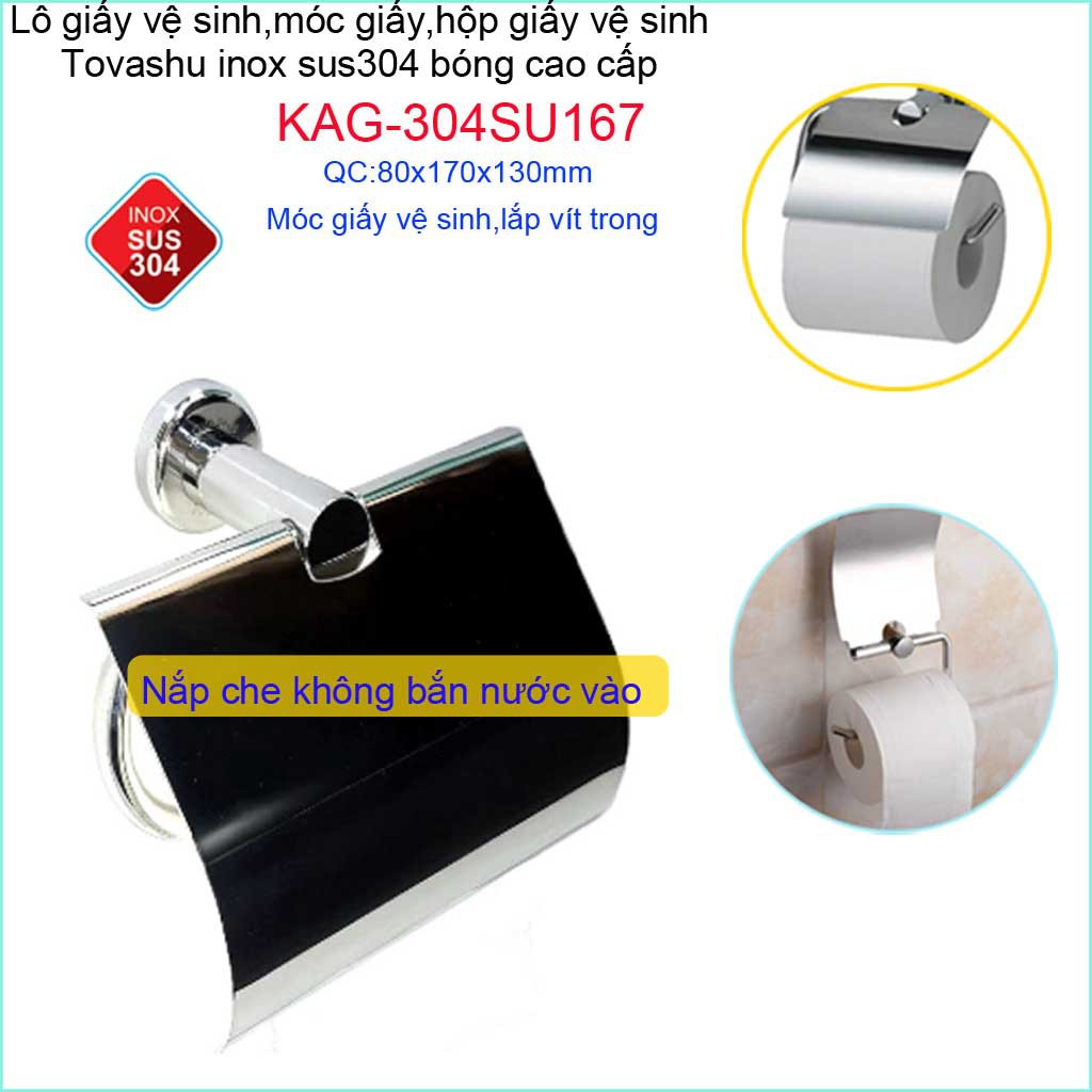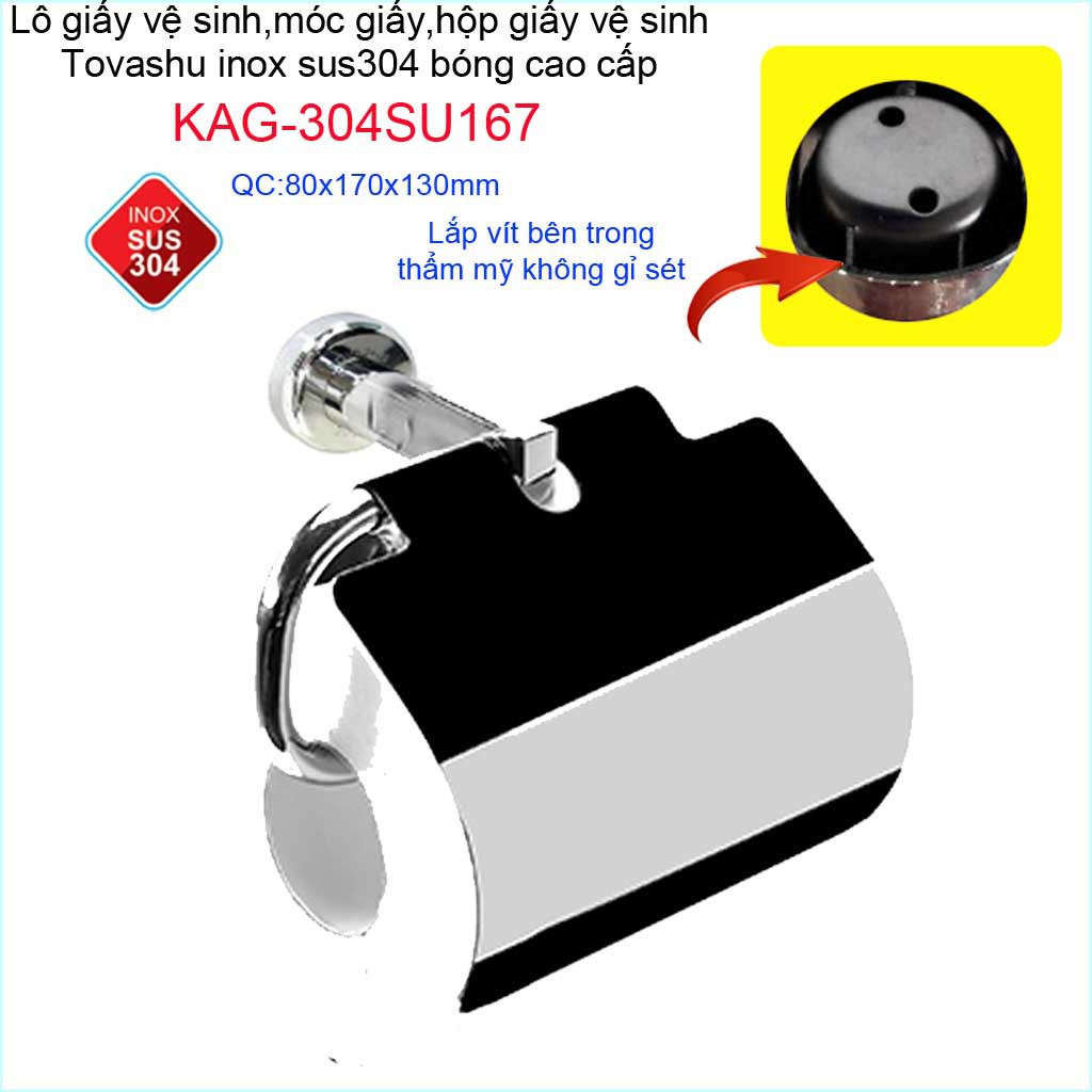 Kệ giấy nhà tắm Tovashu KAG-304SU167, hộp đựng giấy nhà vệ sinh Inox SUS304 Nhật cao cấp