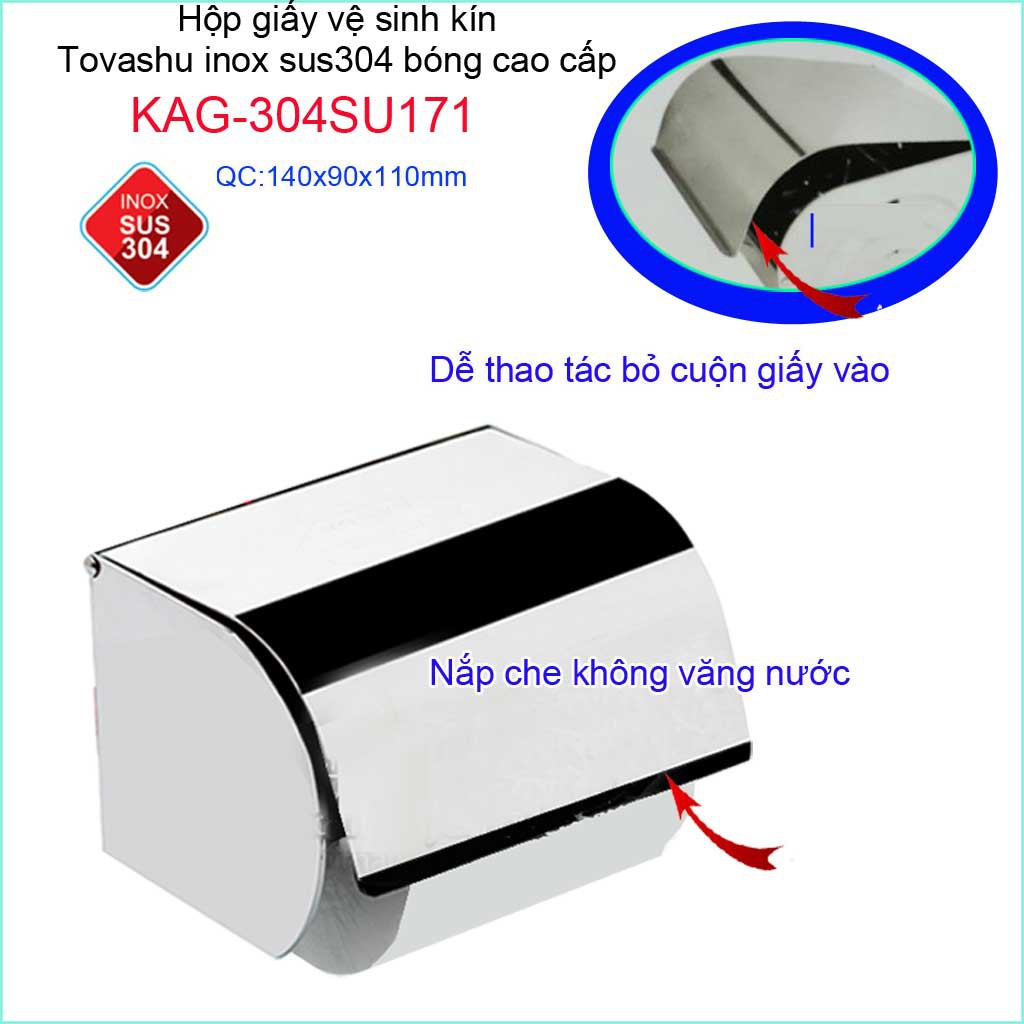 Kệ giấy nhà tắm Tovashu KAG-304SU171, hộp đựng giấy nhà vệ sinh Inox SUS304 Nhật cao cấp
