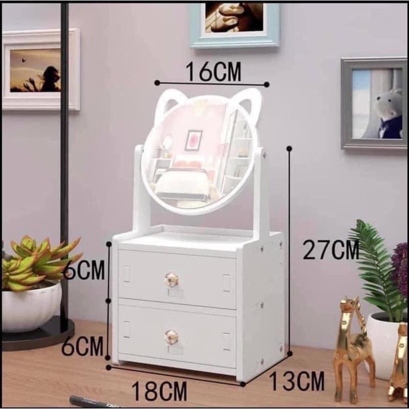 - Kệ Gỗ 2 Tầng Kèm Gương Soi là sản phẩm trang trí, làm đẹp bàn trang điểm của bạn mới nhất với các tính năng mới. Kệ đựng có các ngăn kéo chứa đồ, vật dụng mỹ phẩm, trang sức kèm cả gương soi nên vô cùng tiện dụng và đẹp mắt.
