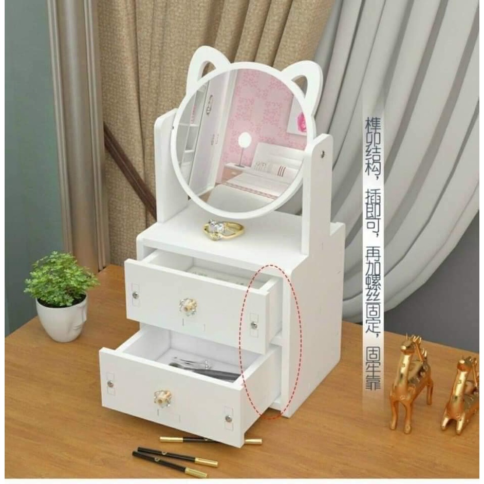 Kệ gỗ 2 tầng kèm gương siêu dễ thương - Kệ tháo lắp dễ dàng