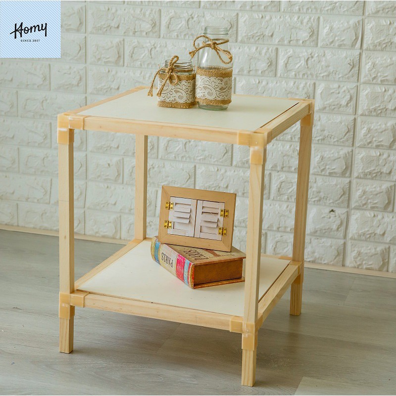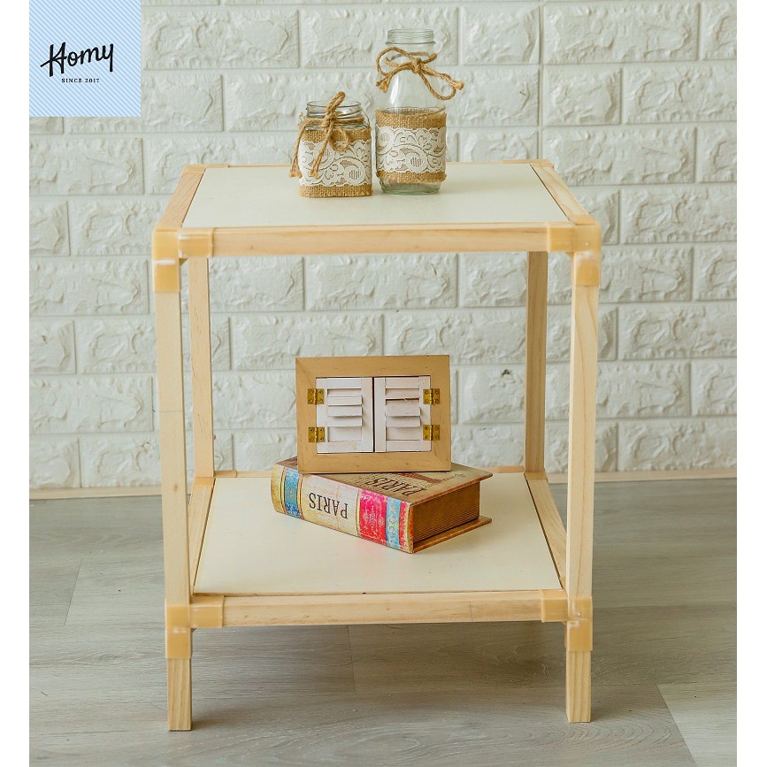 Kệ gỗ 2 tầng lắp ghép tiện lợi- Chất liệu Gỗ thông