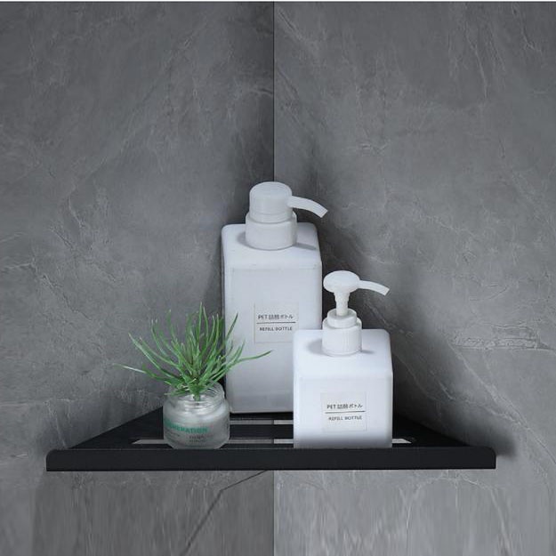 Nhà cửa & Đời sống > Đồ dùng phòng tắm > Kệ để đồ phòng tắm || Kệ góc nhà tắm Hình tam giác Sơn Đen tĩnh điện dán tường siêu dínhCòn hàng