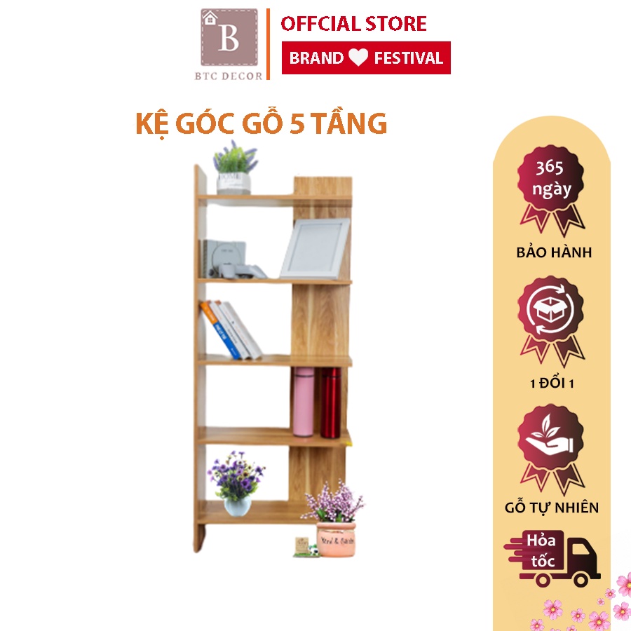 - Tên sản phẩm: Kệ Góc Tường Gỗ 5 Tầng BTC DECOR