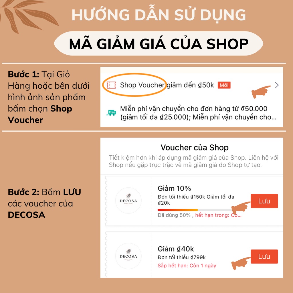 - ĐÁNH GIÁ SHOP 5 SAO KÈM HÌNH ẢNH để được nhận thêm ƯU ĐÃI cho đơn hàng tiếp theo
