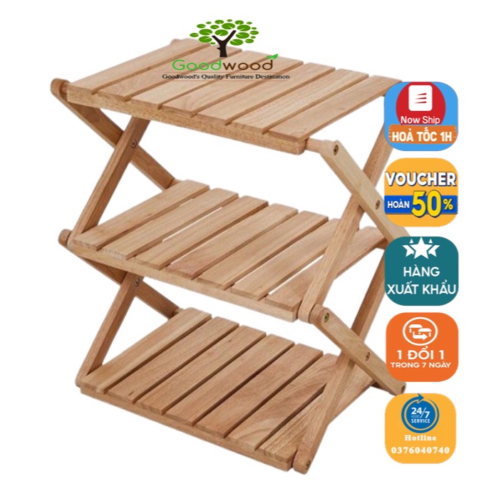 Kệ gỗ đa năng gấp gọn nhiều tầng dã ngoại picnic, đựng đồ để giày dép tiện lợi, trang trí phòng mang đi du lịch