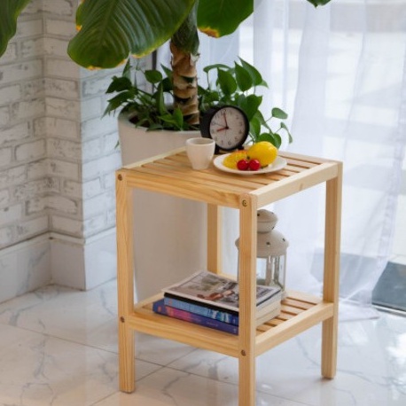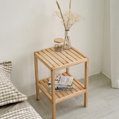 Kệ gỗ đầu giường 2 tầng gỗ thông tự nhiên chống mọt ẩm cong vênh, tự lắp ráp dễ dàng| Tab đầu giường, Kệ để giày dép gỗ