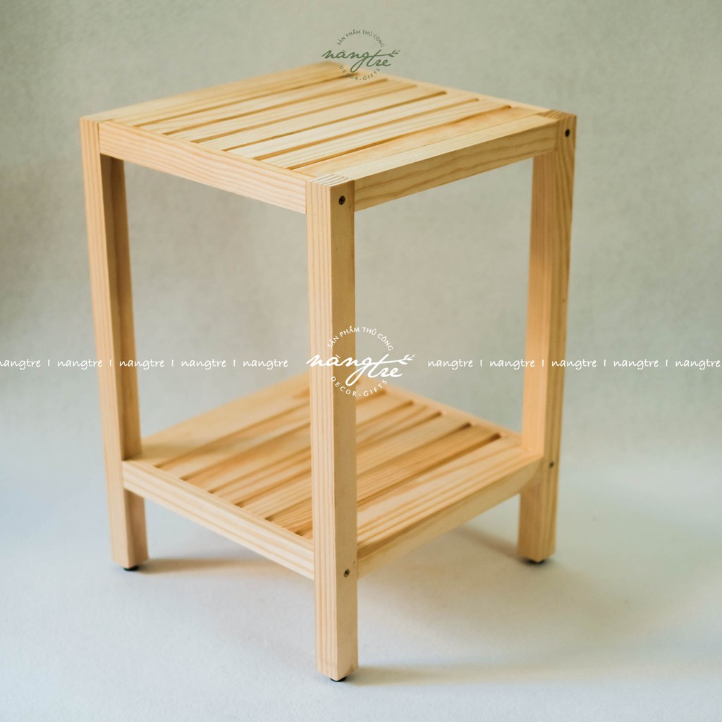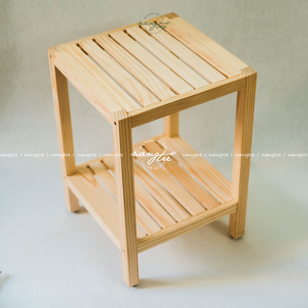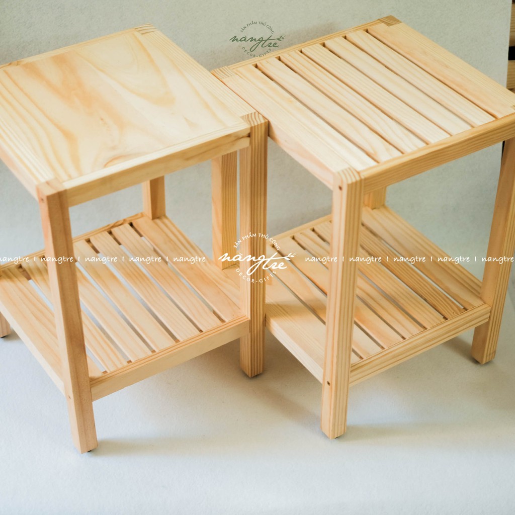Kệ gỗ thông đầu giường 2 tầng, tab gỗ 2 tầng- Được sản xuất từ gỗ thông nhập tuyển chọn tự nhiên, vân gỗ tự nhiên mộc mạc, chống ẩm, mốc