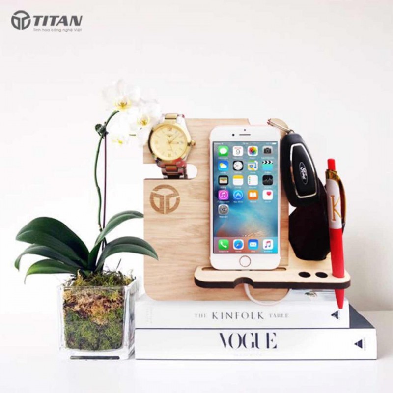 - Tích hợp nhiều chức năng: dựng, sạc điện thoại, cắm bút ví, đồng hồ, kính móc chìa khóa... giúp không gian làm việc gọn gàng ngăn nắp.