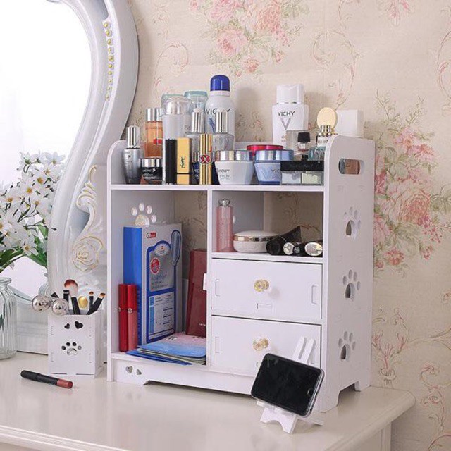 Giới thiệu KỆ GỖ ĐỂ BÀN TRANG ĐIỂM 2 NGĂN KÉO HOẠ TIẾT CHÂN GẤU[BUÔN SỈ RẺ] (HOT)