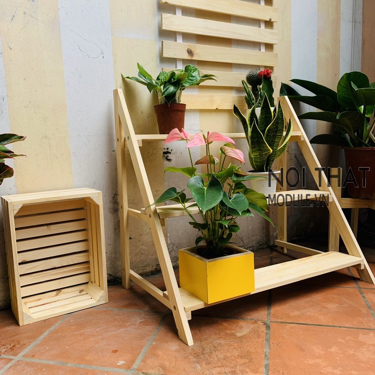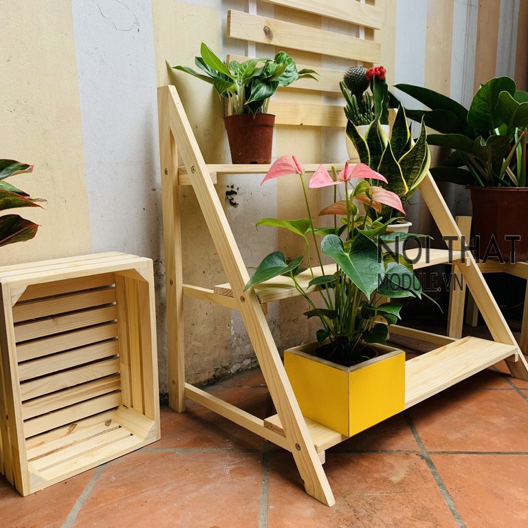 Kệ gỗ để cây 3 tầng hình thang trang trí sân vườn, ban công ( kệ decor phòng 100% gỗ thông tự nhiên )