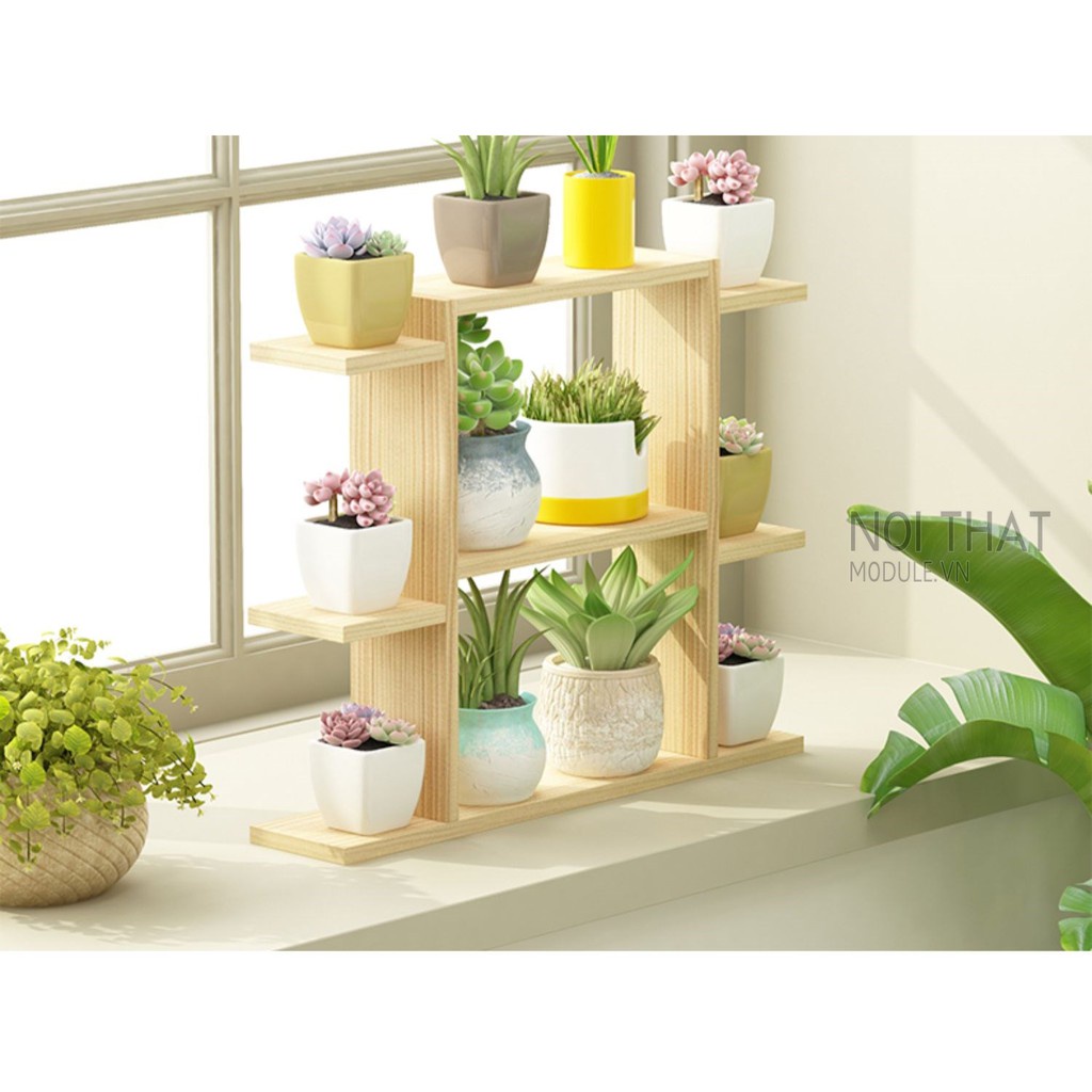 kệ gỗ để chậu hoa cây cảnh trong nhà đẹp gỗ thông tự nhiên kích thước 51x42x12 cm
