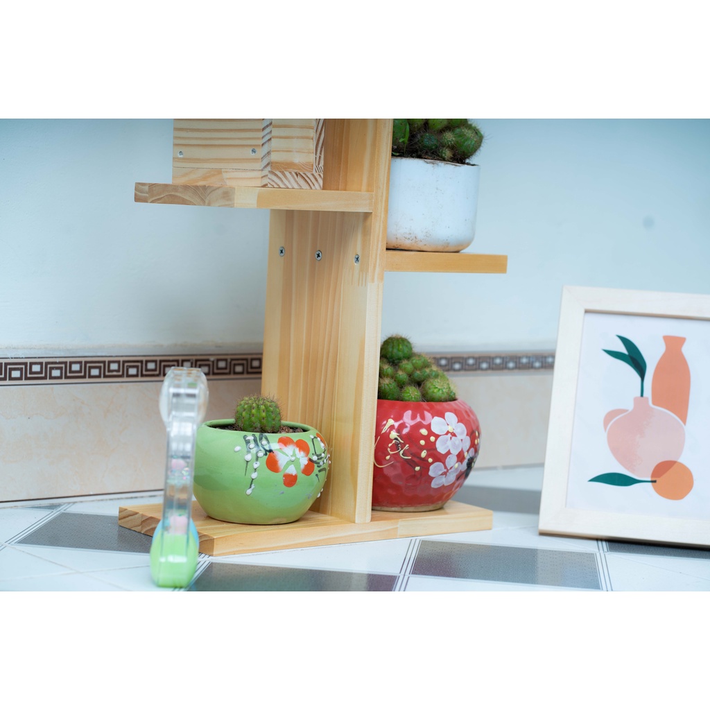 Kệ gỗ để chậu hoa+cây cảnh kích thước 45x25x12 cmChất liệu: được làm từ gỗ thông cực kỳ bền & nhẹ, thân thiện với môi trường, tiện lợi sử dụng trong gia đình, trường học, văn phòng, sơn PU 3 lớp hạn chế tối đa chống thấm, mối mọt