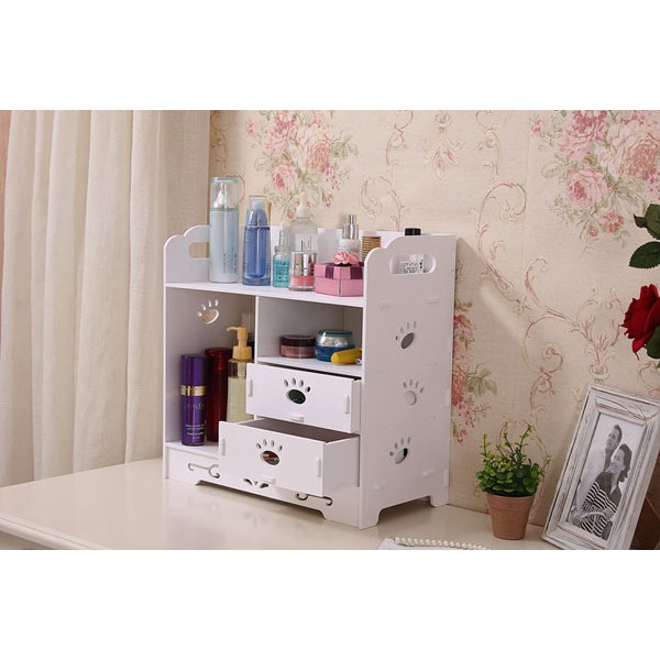 Mỹ phẩm, đồ trang điểm là những vật dụng cần thiết của phái đẹp nhưng cất giữ các vật ấy lẫn chung với đồ dùng khác sẽ khiến cho đồ đạc của bạn bị hư hỏng, mất đi form dáng ban đầu, ảnh hưởng đến “công cuộc” làm đẹp của chị em. Vì thế chúng tôi giới thiệu đến bạn Kệ để đồ trang điểm hoa văn bàn chân chó cho bạn thoải mái để đồ mà không sợ đồ đạc bị va chạm, trầy xước.🔐 CHỨC NĂNG CƠ BẢN CỦA SẢN PHẨM