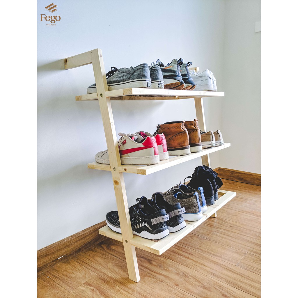 Kệ gỗ để giày 3 tầng kiểu Nhật FEGO/ Tủ giầy dép gỗ thông cao 85cm lắp ghép thông minh