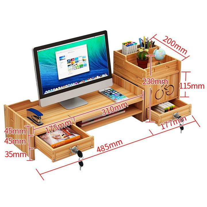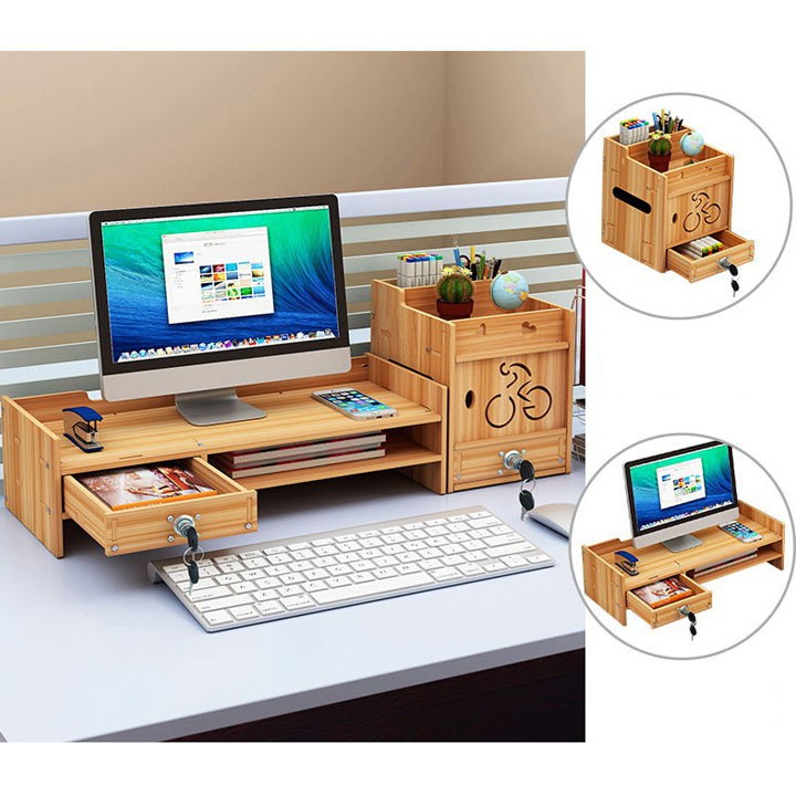 Combo Kệ gỗ để laptop màn hình máy tính ngăn kéo chốt khóa kèm tủ gỗ nhỏ để đồ phụ kiện bàn học siêu sịn không cong vênhTẶNG GIÁ ĐỠ ĐIỆN THOẠI