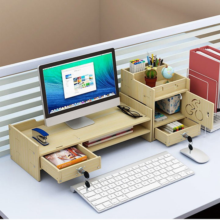 Mẫu kệ để màn hình máy tính phòng làm việc tại nhà với thiết kế thanh lịch là một yếu tố trang trí mỗi văn phòng.