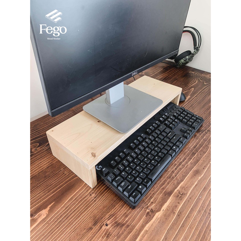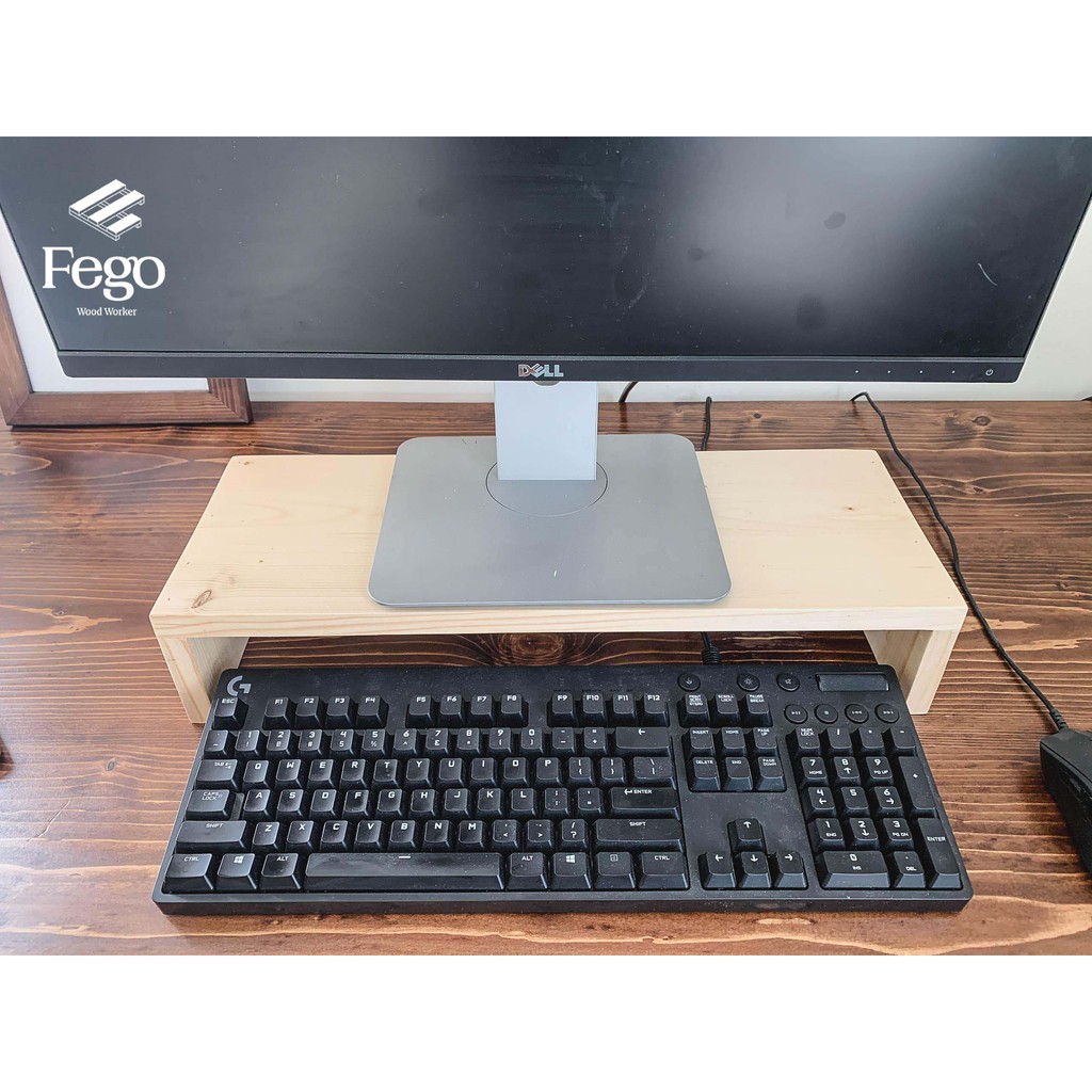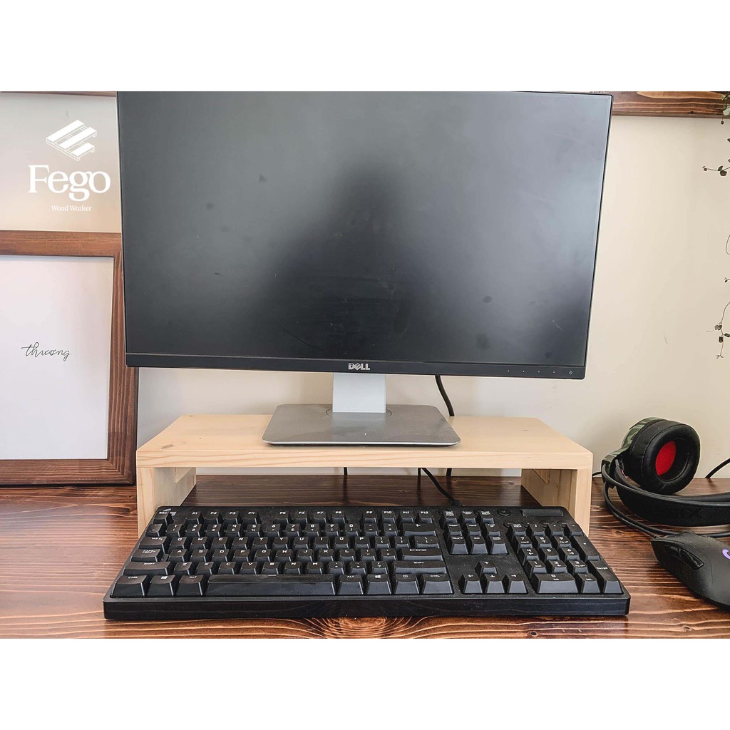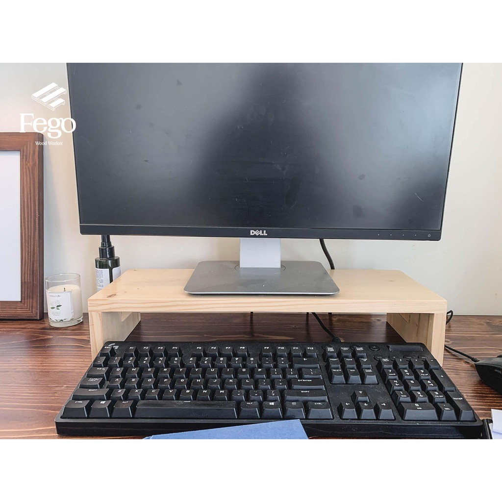 Kệ gỗ thông để màn hình của FEGO sẽ xoá bỏ mọi sự khó chịu của bạn trong vòng 30 giây. Kệ màn hình Monitor Stand giúp nâng độ cao của màn hình lên để khi làm việc bạn luôn ngồi thẳng theo đúng tỷ lệ an toàn cho cột sống; ngoài ra nó còn là nơi để cất các Keyboard và Mouse khi bạn cần không gian để viết, vẽ, thiết kế và làm việc khác,..