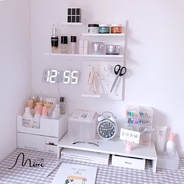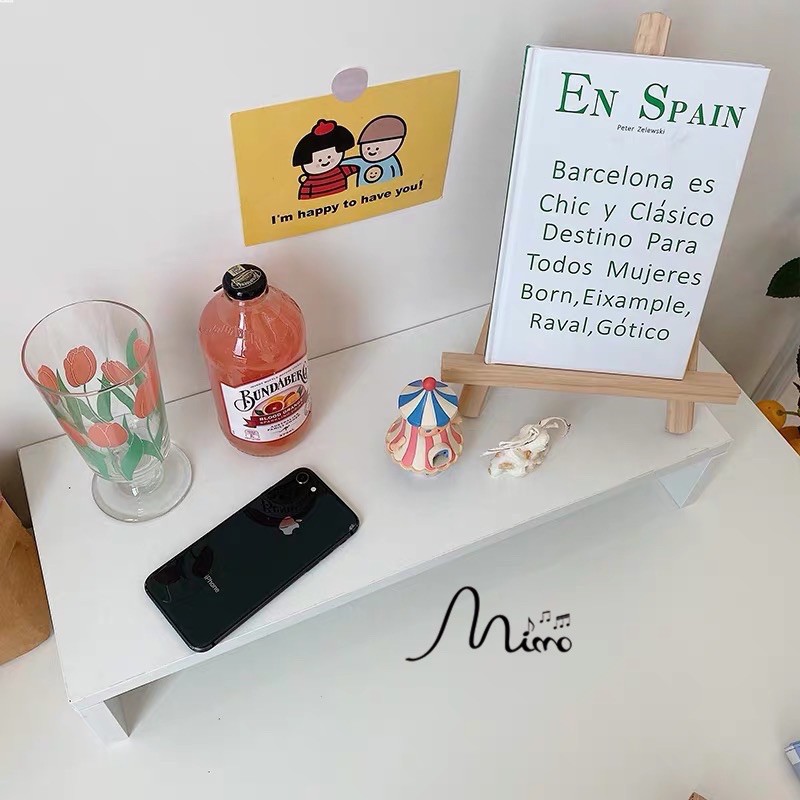 Tên sp: kệ gỗ đặt màn hình máy tínhTiếp thêm 1 mẫu kệ gỗ màu trắng decor bàn học/ bàn làm việc đây. Gỗ MDF xịn xò, màu trắng trang nhã, chịu lực 40kg, để kê màn hình máy tính cho ngang tầm mắt, bên dưới vẫn để được đồ dùng cá nhân, sách vở gọn gàng