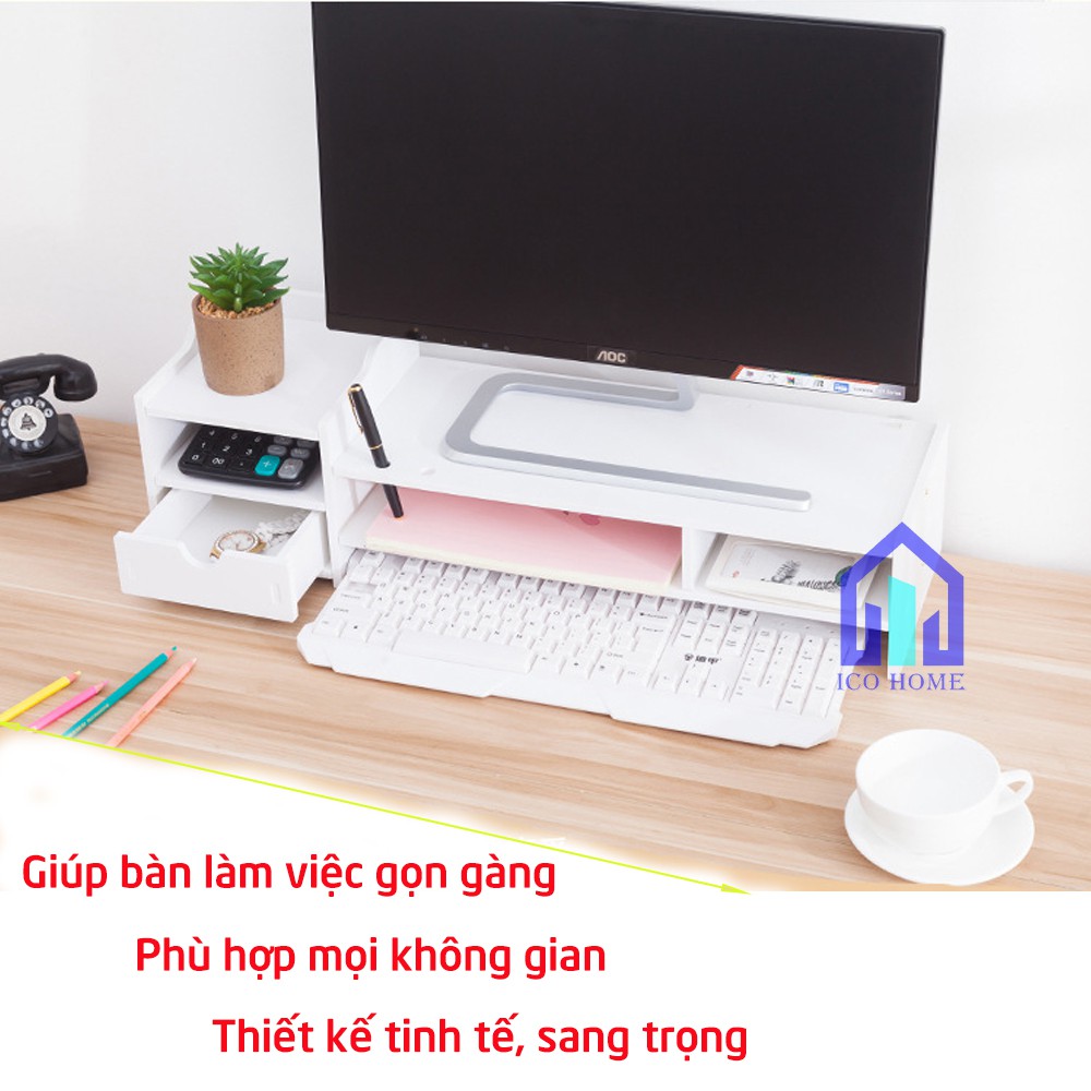Máy tính & Laptop > Phụ Kiện Máy Tính > Bàn Laptop || Kệ gỗ để màn hình máy tính, laptop cho bàn làm việc gọn gàng, có hộc kéo - ICO HOMECòn hàng