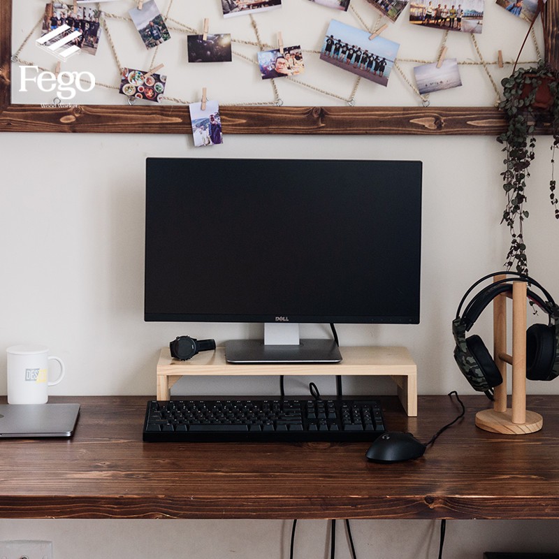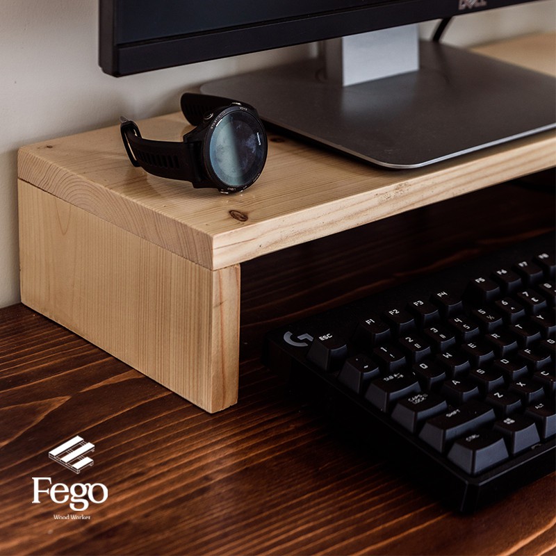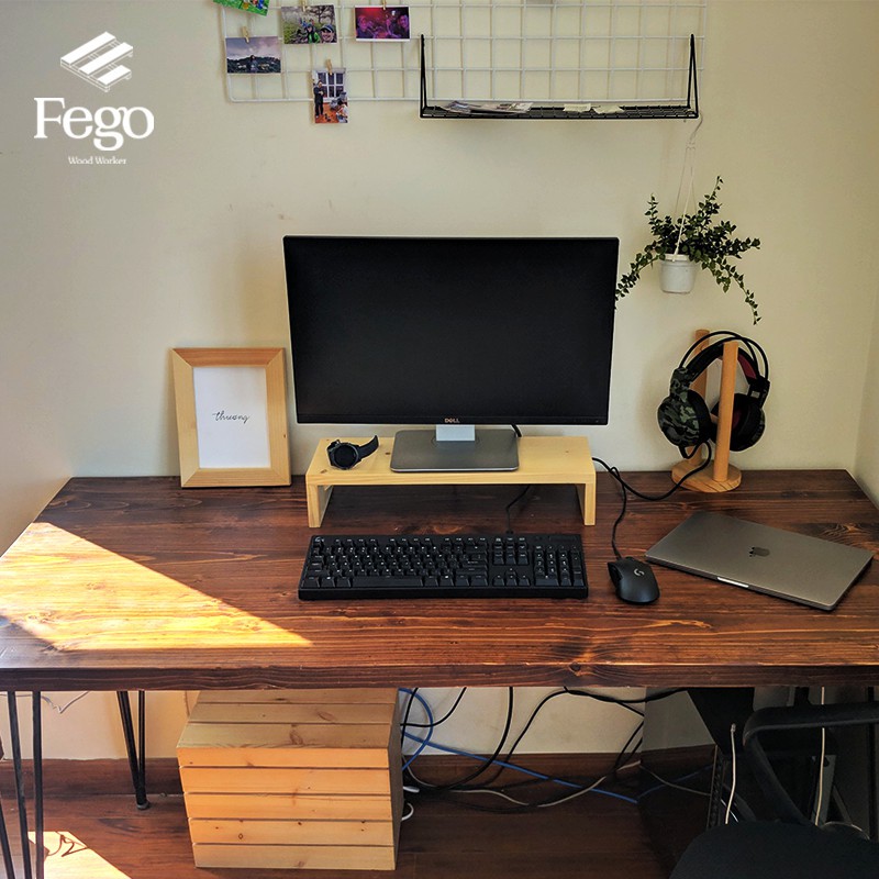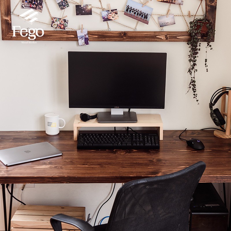 Kệ gỗ thông để màn hình của FEGO sẽ xoá bỏ mọi sự khó chịu của bạn trong vòng 30 giây. Kệ màn hình Monitor Stand giúp nâng độ cao của màn hình lên để khi làm việc bạn luôn ngồi thẳng theo đúng tỷ lệ an toàn cho cột sống; ngoài ra nó còn là nơi để cất các Keyboard và Mouse khi bạn cần không gian để viết, vẽ, thiết kế và làm việc khác,..