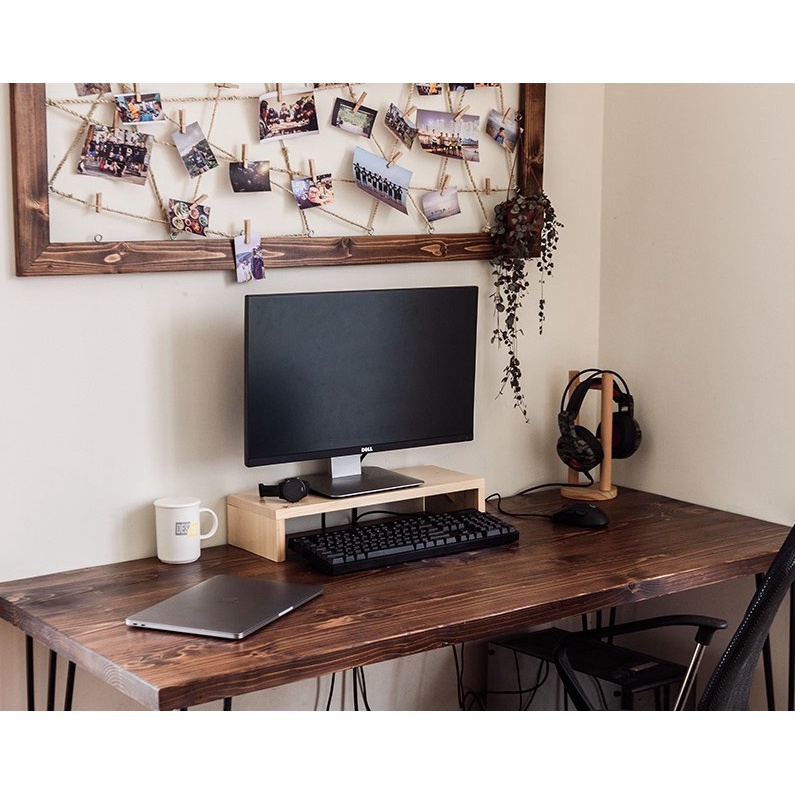 Kệ gỗ thông để màn hình của sẽ xoá bỏ mọi sự khó chịu của bạn trong vòng 30 giây. Kệ màn hình Monitor Stand giúp nâng độ cao của màn hình lên để khi làm việc bạn luôn ngồi thẳng theo đúng tỷ lệ an toàn cho cột sống; ngoài ra nó còn là nơi để cất các Keyboard và Mouse khi bạn cần không gian để viết, vẽ, thiết kế và làm việc khác,..