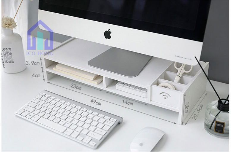 Kệ gỗ để màn hình của ICO HOME sẽ xoá bỏ mọi sự khó chịu của bạn trong vòng 30 giây. Kệ màn hình Monitor Stand giúp nâng độ cao của màn hình lên để khi làm việc bạn luôn ngồi thẳng theo đúng tỷ lệ an toàn cho cột sống; ngoài ra nó còn là nơi để cất các Keyboard và Mouse khi bạn cần không gian để viết, vẽ, thiết kế và làm việc khác,..