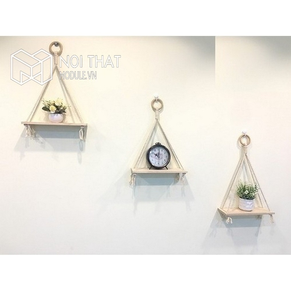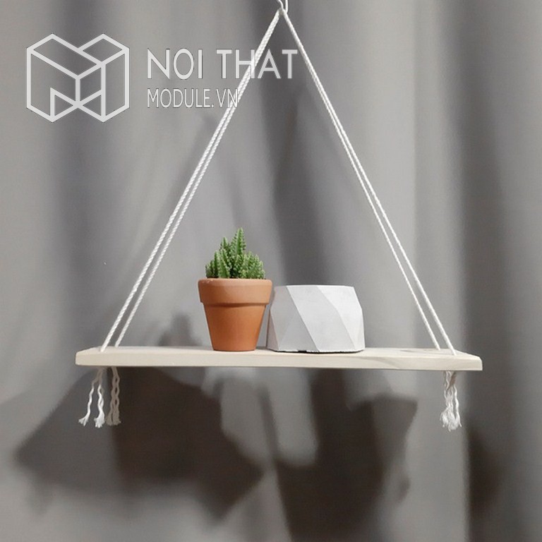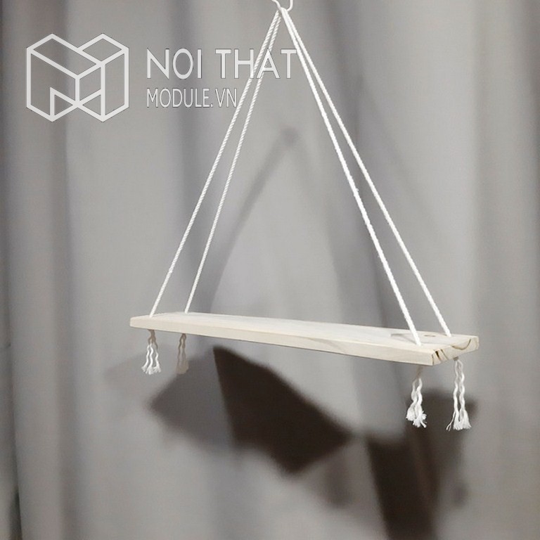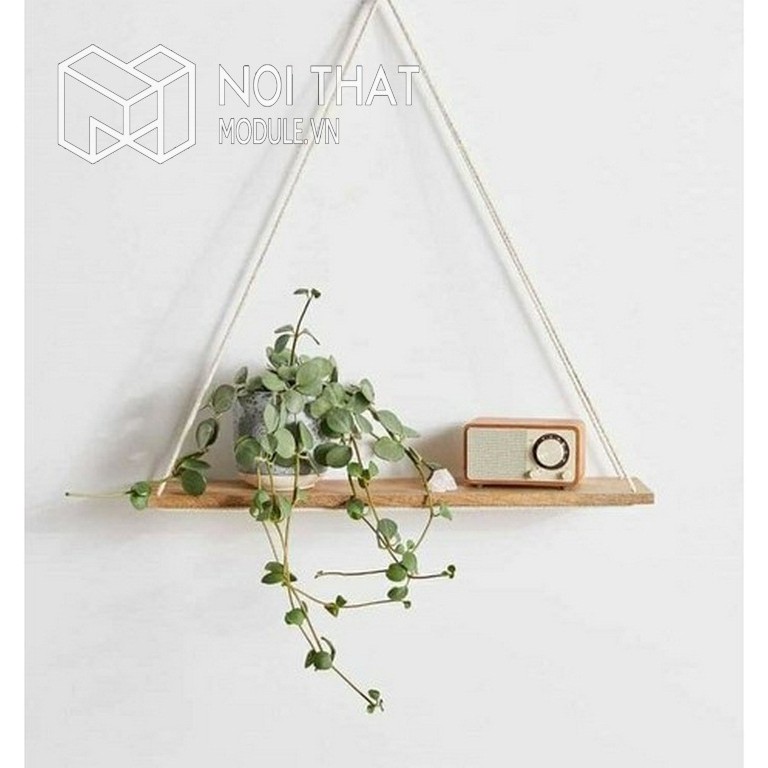 Đặc điểm nổi bật: Kệ được làm từ gỗ tự nhiên, gỗ thông nhập khẩu cao cấp với màu vàng nhạt dịu nhẹ, Ván gỗ và dây thừng dày dặn giúp kể chịu tải trọng lớn. Với đặc điểm gọn nhẹ, rất dễ dàng di chuyển, kệ sẽ là một đồ vật trang trí giúp căn phòng của bạn trở nên trẻ trung và hài hòa với thiên nhiên.