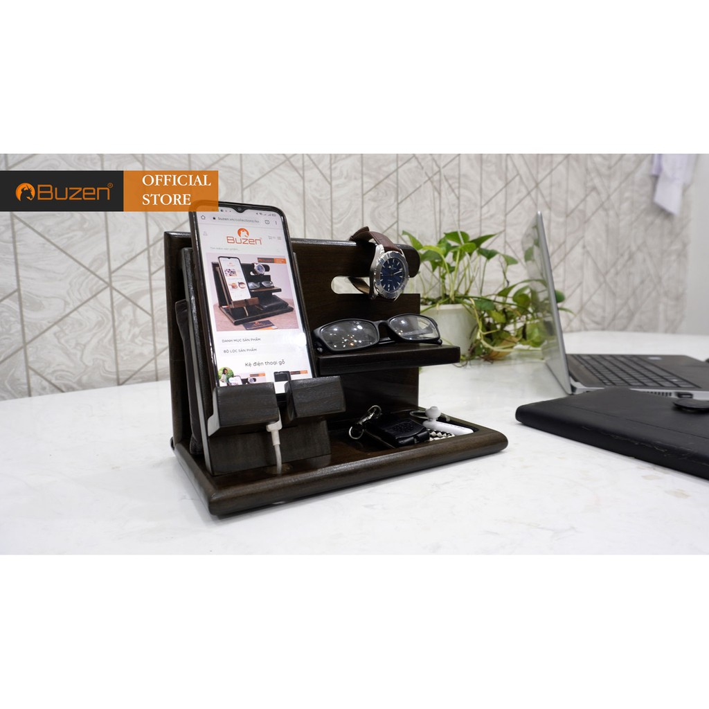 Kệ điện thoại đa năng bằng gỗ BUZEN gỗ thông Newzealand nhập khẩuKệ điện thoại gỗ BUZEN dành cho nam giới được thiết kế để hướng đến người đàn ông hiện đại, năng động, muốn chuẩn bị cho những thử thách mỗi ngày, đồng thời không bao giờ thỏa hiệp với phong cách lịch lãm của mình. Được làm thủ công bằng gỗ thông tự nhiên, với sự chú ý cao đến các chi tiết và các khe lưu trữ đa năng, linh hoạt, chiếc kệ sạc điện thoại bằng gỗ này sẽ ngay lập tức trở thành giải pháp sắp xếp yêu thích của bạn, dùng cho gia đình hay ở văn phòng làm việc của bạn.