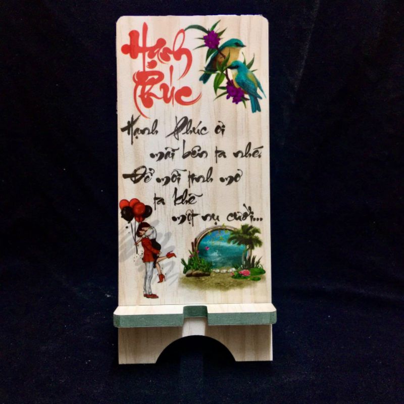 kệ gỗ được in 3D thư pháp rất đẹpcó khe cho dây sạc